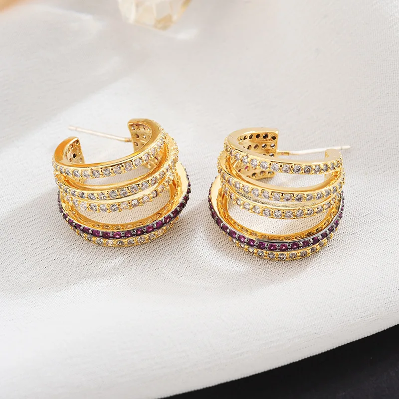 Форма: hipster Золотой многослойные, круглые серьги