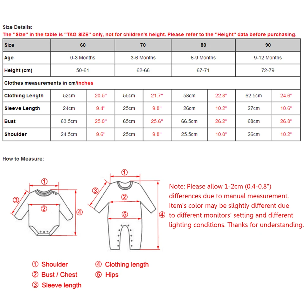 Строка «Размер» в таблице означает РАЗМЕР НА ЯРЛЫКЕ, а не реальный рост ребенка. Пожалуйста, перед покупкой обратите особое внимание на секцию «Высота».