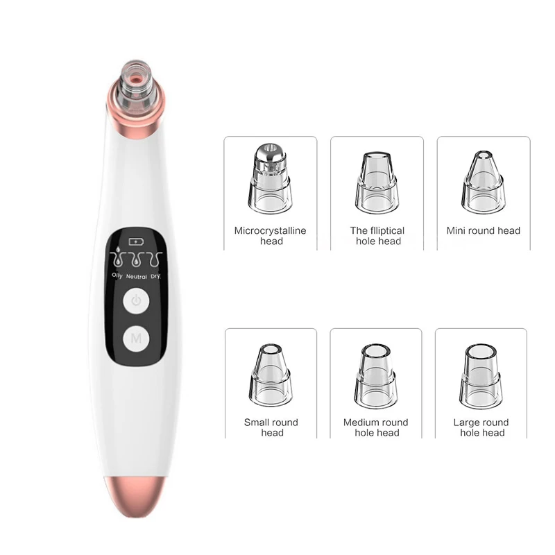 Компактная машина для очистки черных точек, которая является косметическим инструментом с множеством функций, таких как дермабразия, компактность, очистка пор, удаление акне и угрей. Есть 6 сменных присосок различных размеров, которые можно отрегулировать в соответствии с вашими фактическими потребностями.