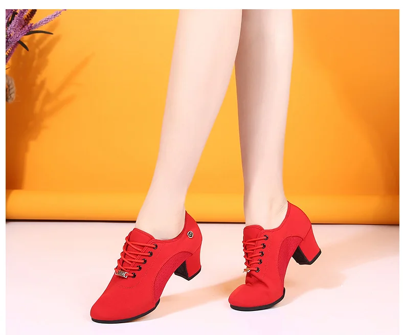 Современная танцевальная обувь для бальных танцев для женщин; дышащие мягкие туфли-оксфорды; Танцевальные Кроссовки на высоком каблуке; женская обувь для джазовых танцев