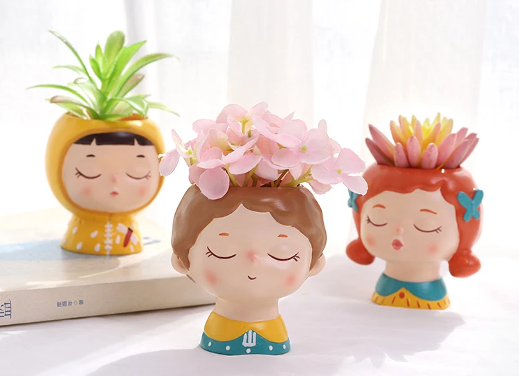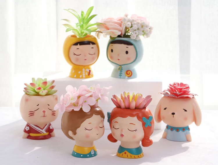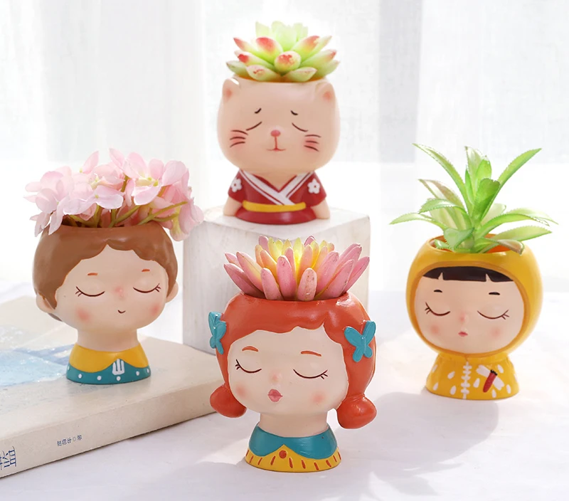 2 шт., цветочный горшок из ПВХ с рисунком кота/мальчика/девочки/кролика