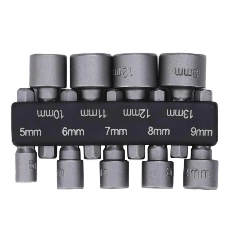 * 9 метрических шестигранных бит Набор гнезд 1/4 "Привод включает: 5 мм, 6 мм, 7 мм, 8 мм, 9 мм, 10 мм, 11 мм, 12 мм, 13 мм
