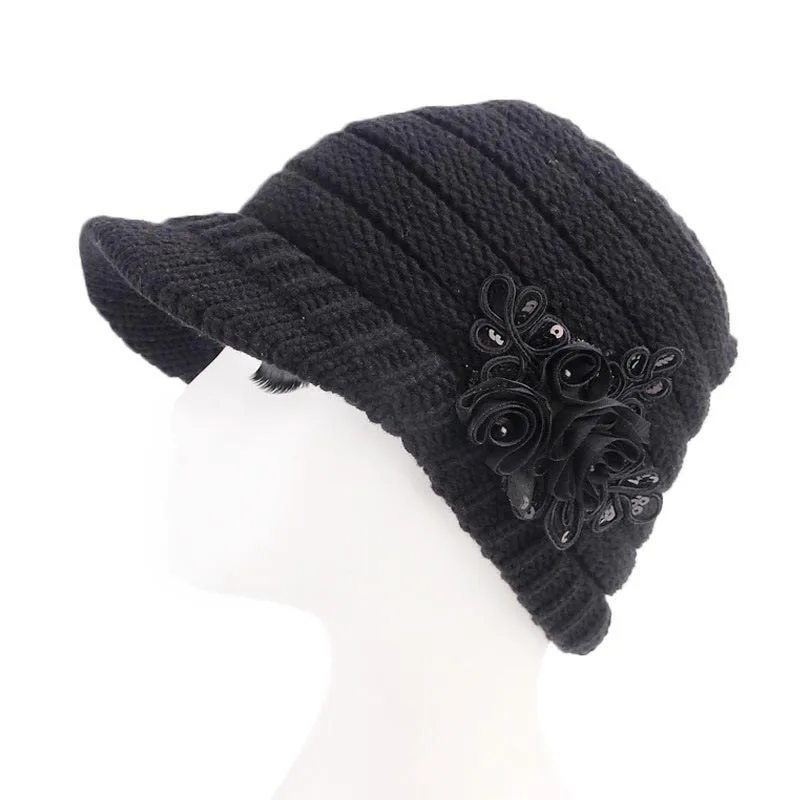 Блестящий цветок твист вязание полей шапка зимняя теплая женская уличная мешковатая берет шапка