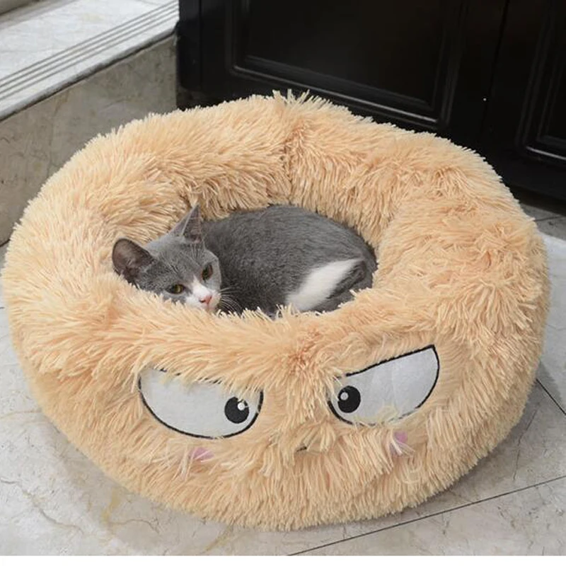 Милый круглый лежак для кошек, маленьких собак, удобная кровать для глубокого сна, домик для питомцев, щенков, котят, йоркширский коврик, Моющийся питомник
