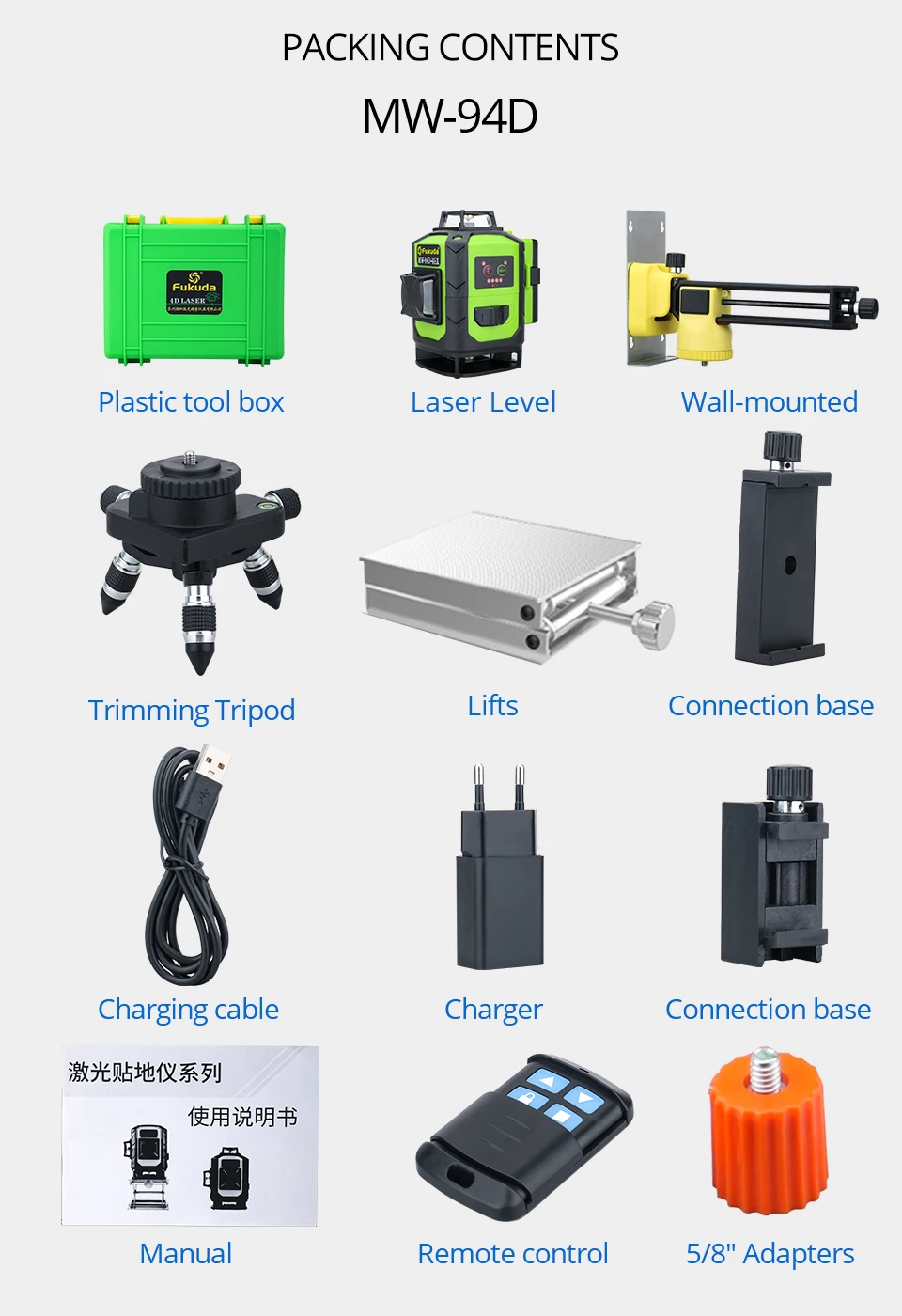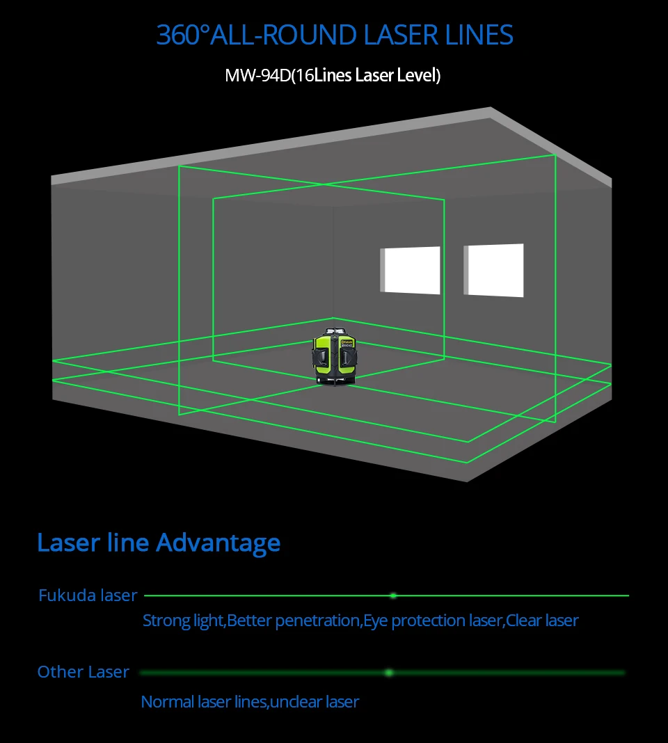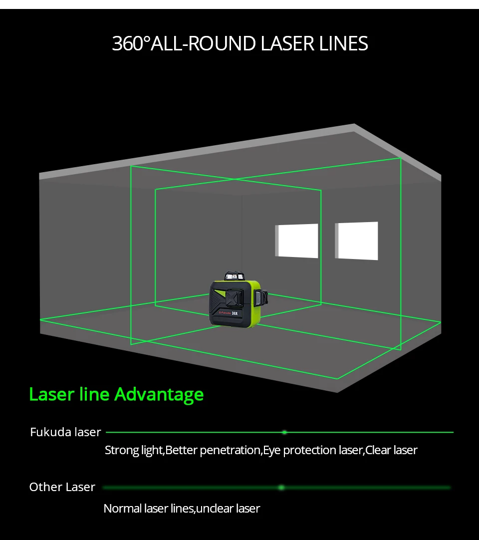 Fukuda вращающийся лазерный уровень 360 16 линий 4D зеленый луч лазерный нивелир
