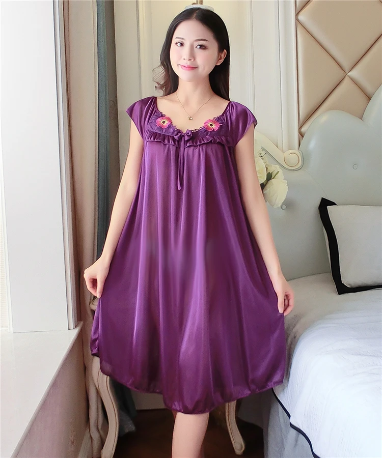 Летняя пикантная шелковая ночная рубашка, женская одежда для сна, Женская атласная ночная рубашка размера плюс, ночная рубашка, Дамское домашнее платье для сна, L XL XXL XXXL 4XL