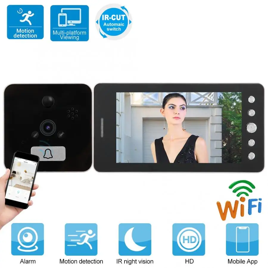 5 дюймов 1080P смарт WiFi видео дверной звонок безопасности электронный дверной зритель PIR Обнаружение движения