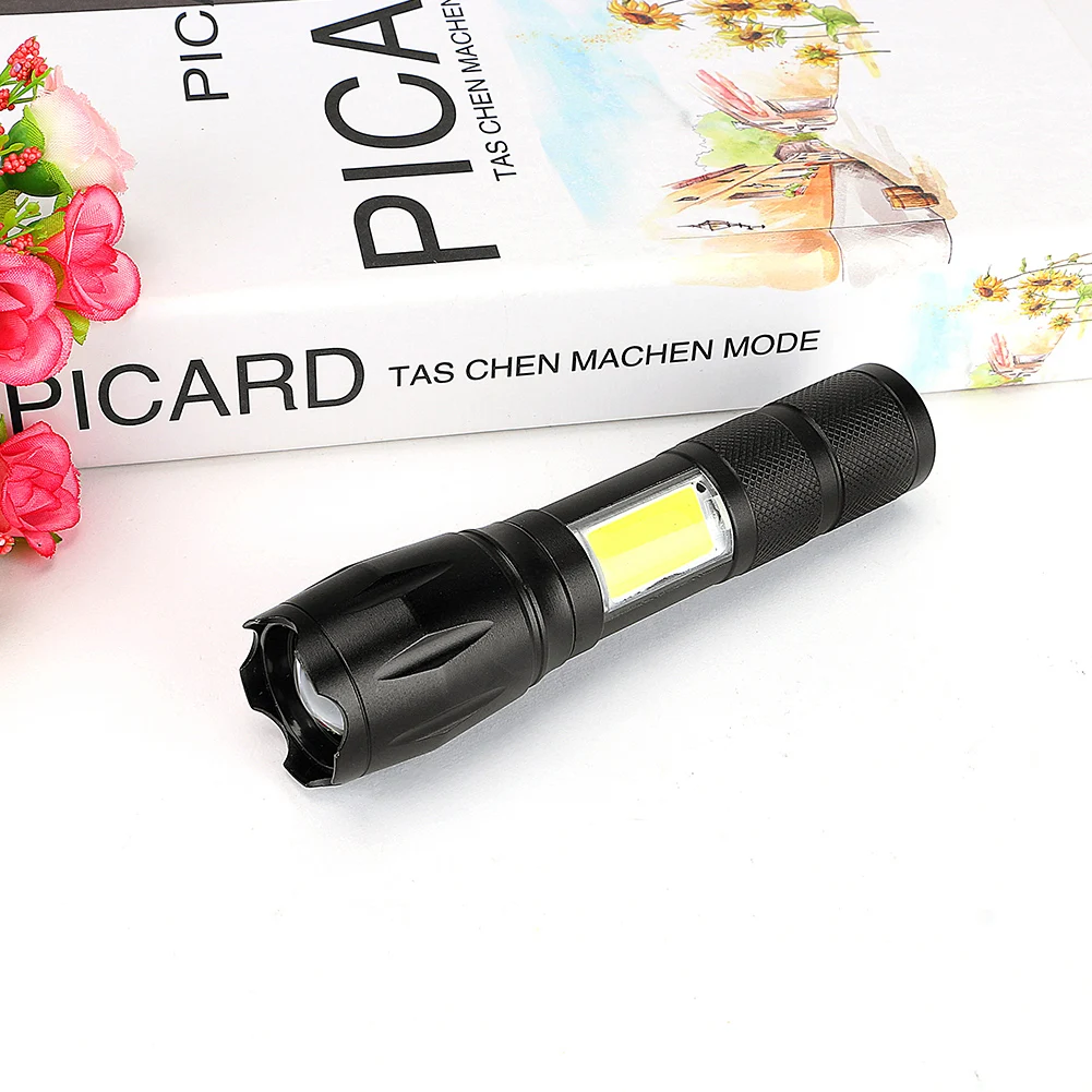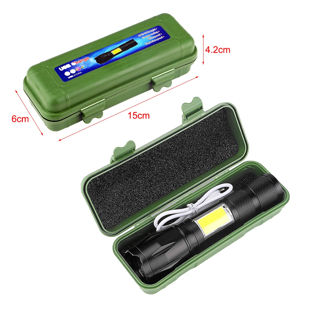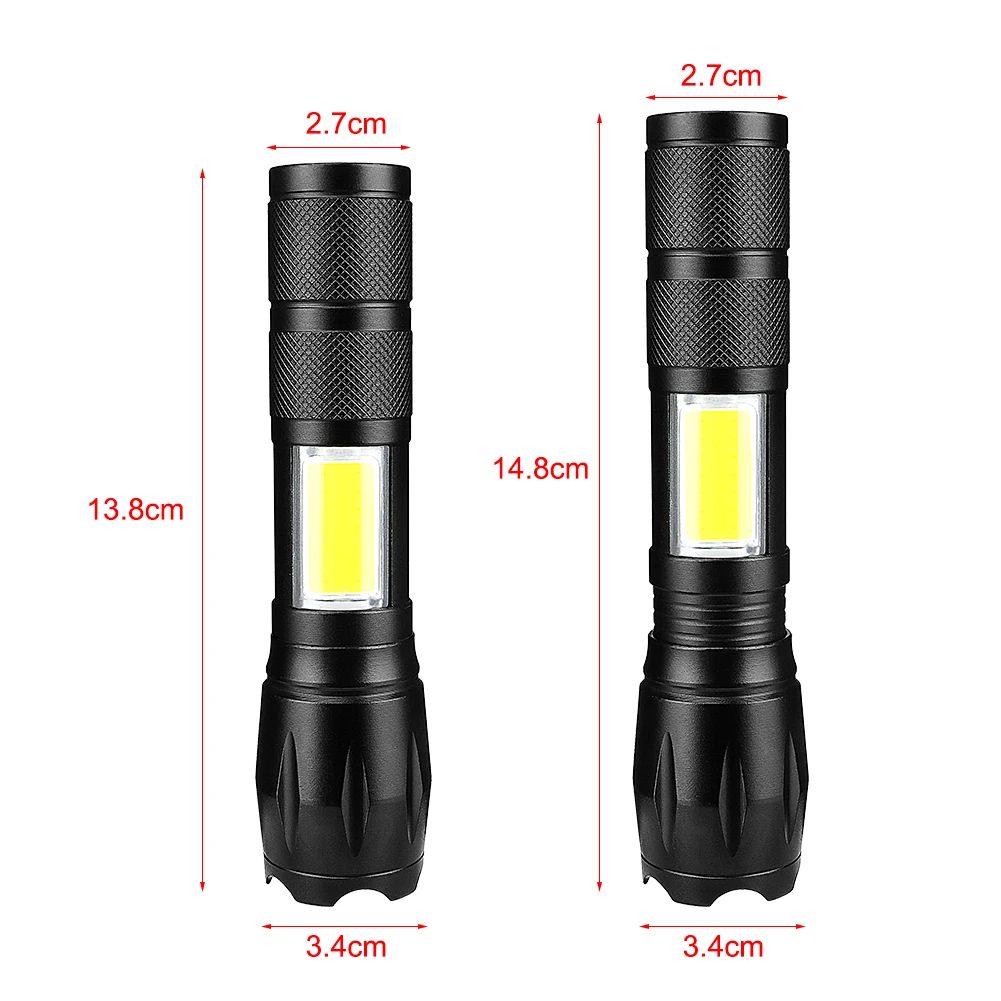 Особенности: Высококачественный материал из алюминиевого сплава со стабильной производительностью и долгим сроком службы. Регулируемый фокус, вы можете увеличить/уменьшить масштаб, чтобы настроить его луч. 3 режима светодиодный светильник: кнопка включения/выключения триггерный переключатель с T6 высокий светильник, T6 светильник стробоскоп, COB высокий светильник. Служит удобным зарядным устройством для зарядки вашего телефона и других устройств в чрезвычайной ситуации. Маленький и легкий, удобно носить с собой в любом месте. Водонепроницаемость, можно использовать в дождливый день, но нельзя положить его в воду! Подходит для: кемпинга, пеших прогулок, велоспорта, альпинизма, охоты, рыбалки, авто чрезвычайных ситуаций, ремонта дома, семьи и активного отдыха и т. д. Спецификация: Материал: алюминиевый сплав Цвет изделия: черный Светильник Цвет: белый Светодиодный Бисер: T6 + COB Режим переключения: T6 высокий светильник, T6 светильник стробоскоп, COB высокий светильник Зум: увеличение и уменьшение Зума Переключатель: кнопочный переключатель Источник питания: Встроенная перезаряжаемая литиевая батарея Размеры: 3,4 см x 13,8 см x 2,7 см (до растянутом положении)/3,4 см x 14,8 см x 2,7 см (после стрейч) Вес: 178 г Посылка включает в себя: Фонарик-1 шт. 1 х USB кабель для зарядки 1 х чехол для хранения