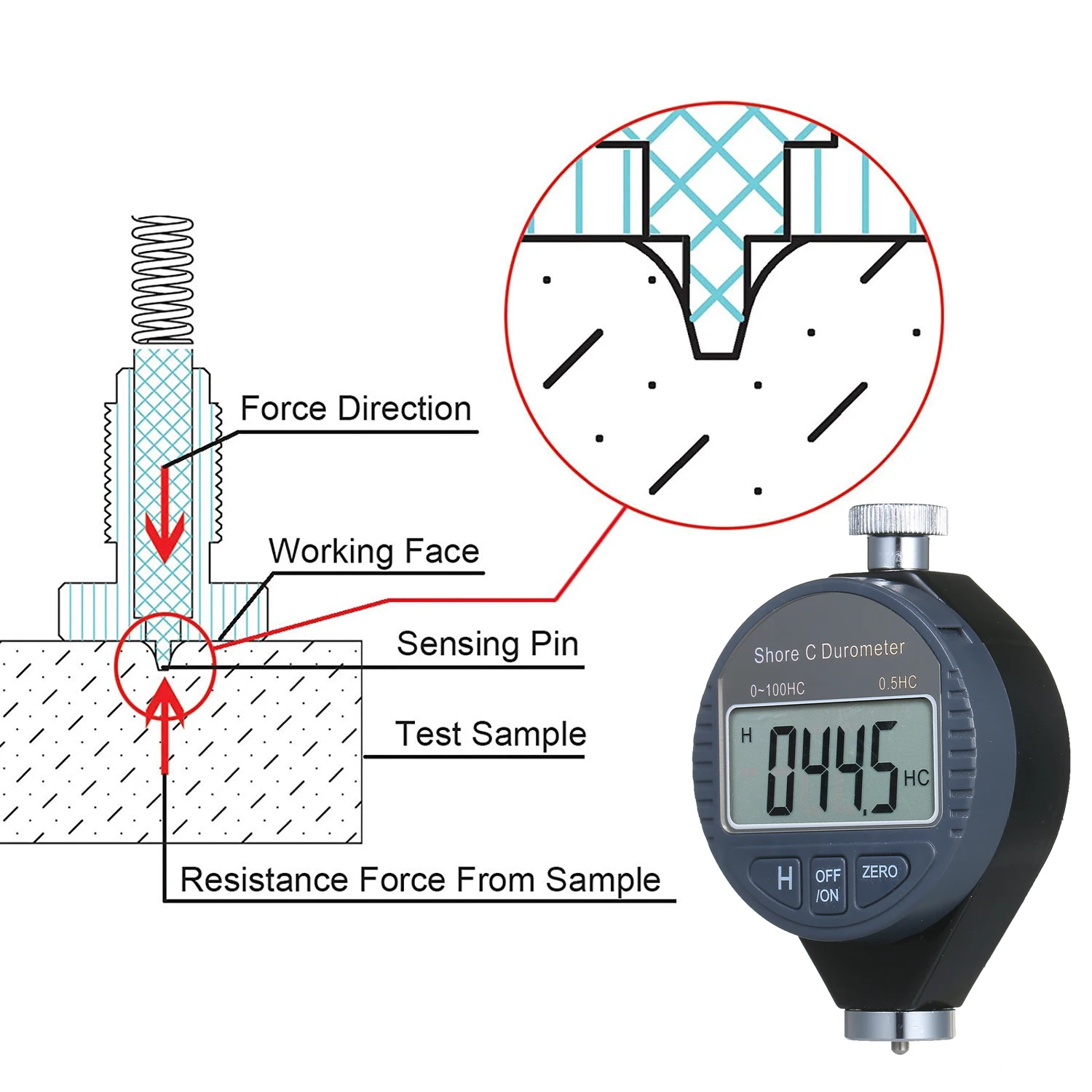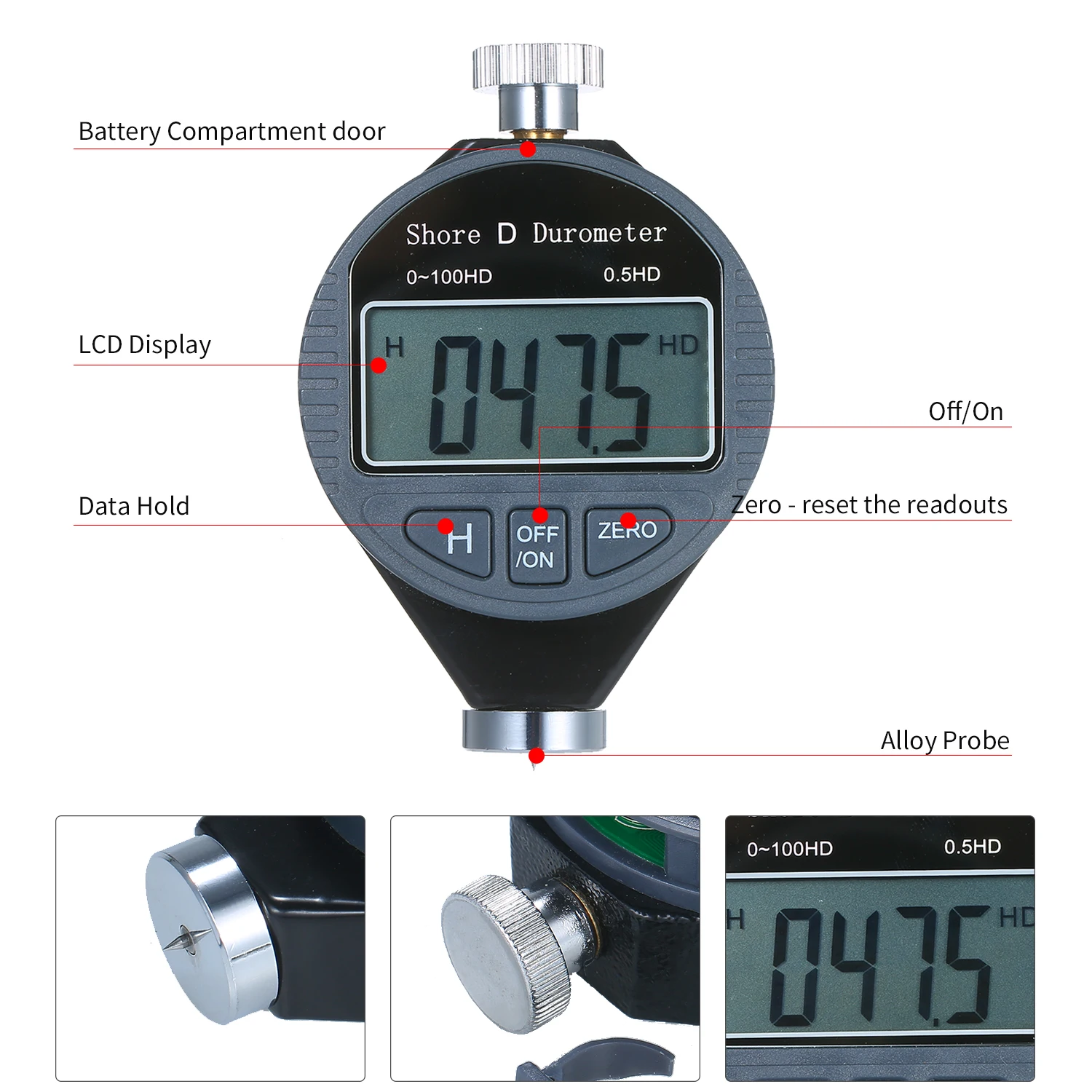 Универсальное Использование --- этот цифровой сушильный дюрометр с переключателем питания, удобно менять единицы измерения в любом положении, сброс в любом положении, очень простота в эксплуатации.