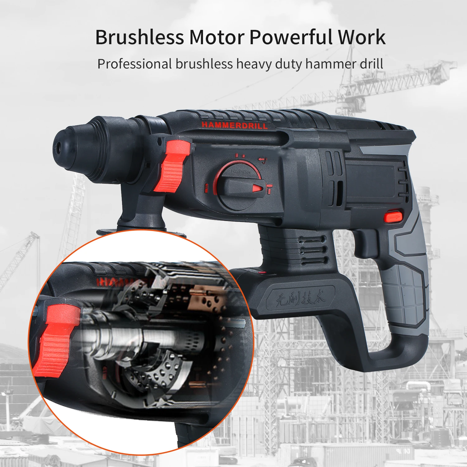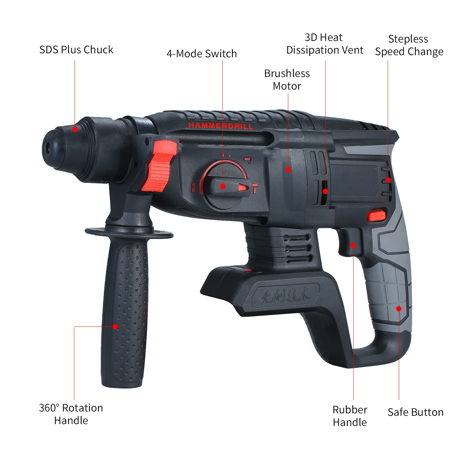 Цифровой бесщеточный мотор-обеспечивает эффективность, высокая производительность при сверлении через жесткие поверхности, такие как кирпич, бетон и другая кладка. И не нужно заменять углеродную щетку, а также на более крупный двигатель ротор статор, снижать расход энергии и не сжигать.