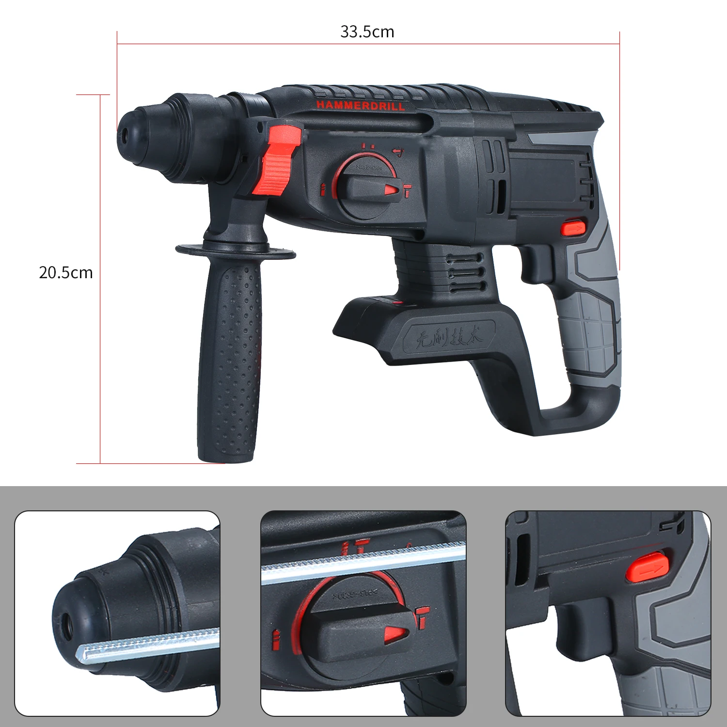 Широкое применение-профессиональная вращающаяся Ударная дрель, обеспечивающая мощное ударное воздействие и прочность молотка для выполнения тяжелых проектов по дереву, каменной кладке, твердой стали и бетету, что означает, что большая часть работ может быть выполнена.
