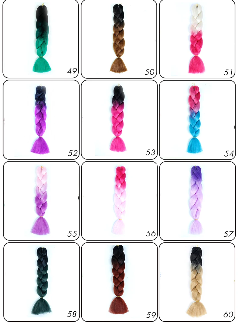 Материал: высокотемпературное волокно Текстура: огромные косички, на крючках Товары на посылка: 1 прядь/упаковка Цвет Тип: эффектом деграде (переход от темного к Может быть обработан: нет
