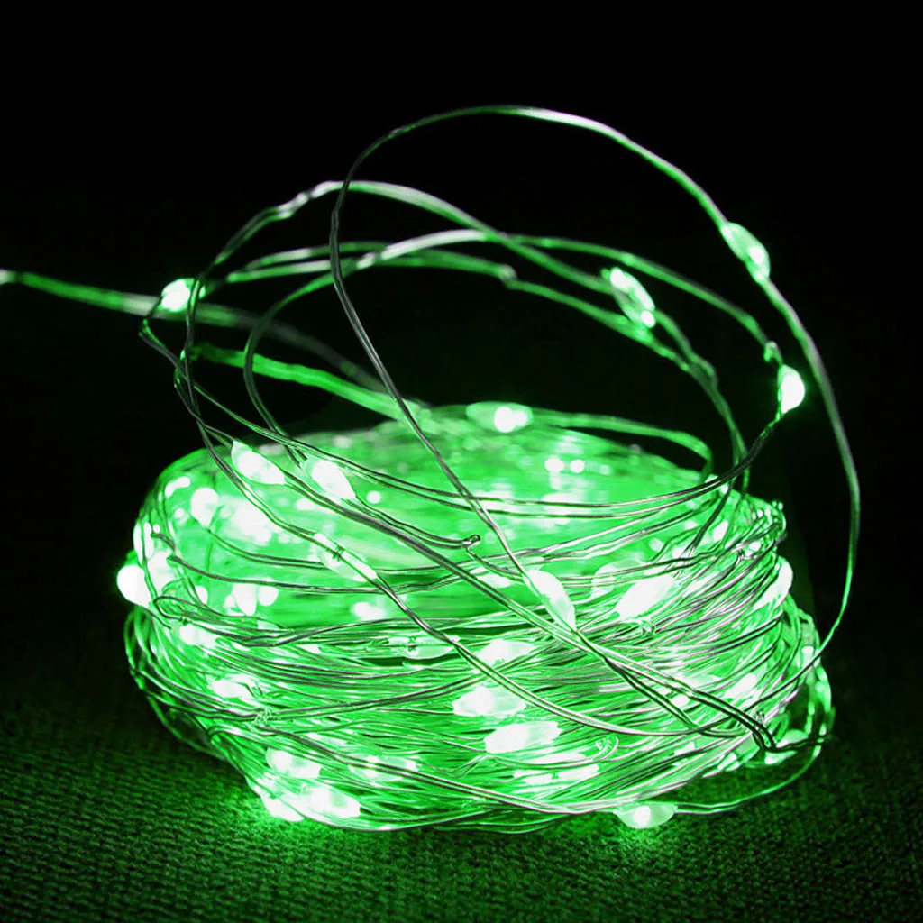 Гибкая медная проволочная гирлянда, легкая установка, легко сгибается и образуется вокруг растений, знаков, мебели и почти всего остального, в темноте провод тускнеет, оставляя только яркие огни.