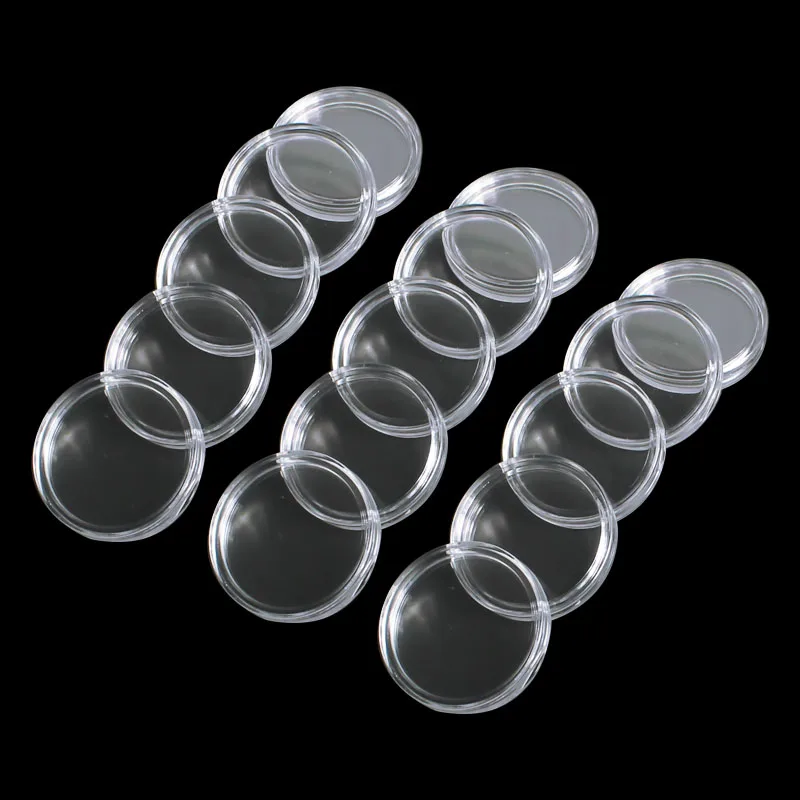 Материал: экологичный пластиковый материал Размер: внутренний диаметр 18 мм/20 мм/22 мм/23 мм/25 мм/26 мм/27 мм/28 мм/30 мм/32 мм/35 мм/38 мм/40 мм Цвет: прозрачный В комплект входит: держатель для монет 100 шт.