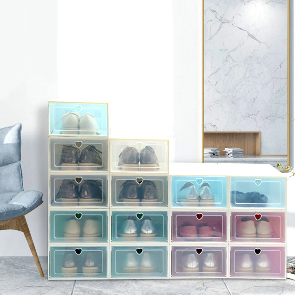 Прозрачный PP Штабелируемый пыленепроницаемый флип ящик для обуви контейнер для хранения Органайзер