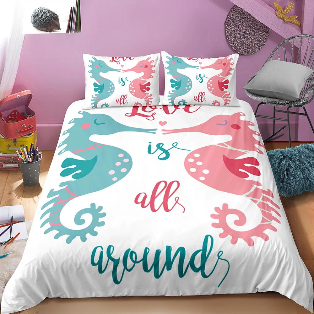 Комплект постельного белья с рисунком розово-голубого морского конька, пододеяльник для детской комнаты, мягкий пододеяльник для кровати, 2/3 шт.