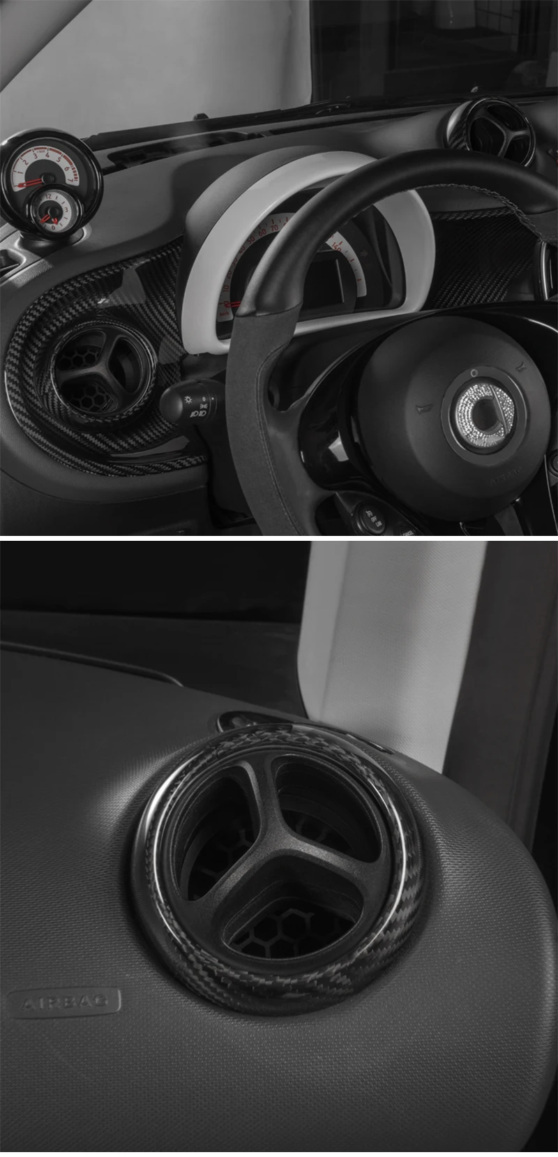 100% Новый бренд Материал: углеродное волокно Спецификация: 4 шт./компл. Для Mercedes Smart fortwo forfour 453 Простой способ установки, с помощью клейкой ленты 3м пасты, нет необходимости разбирать автомобиля Оригинальный автомобиль 1: 1 производство, очень подходит