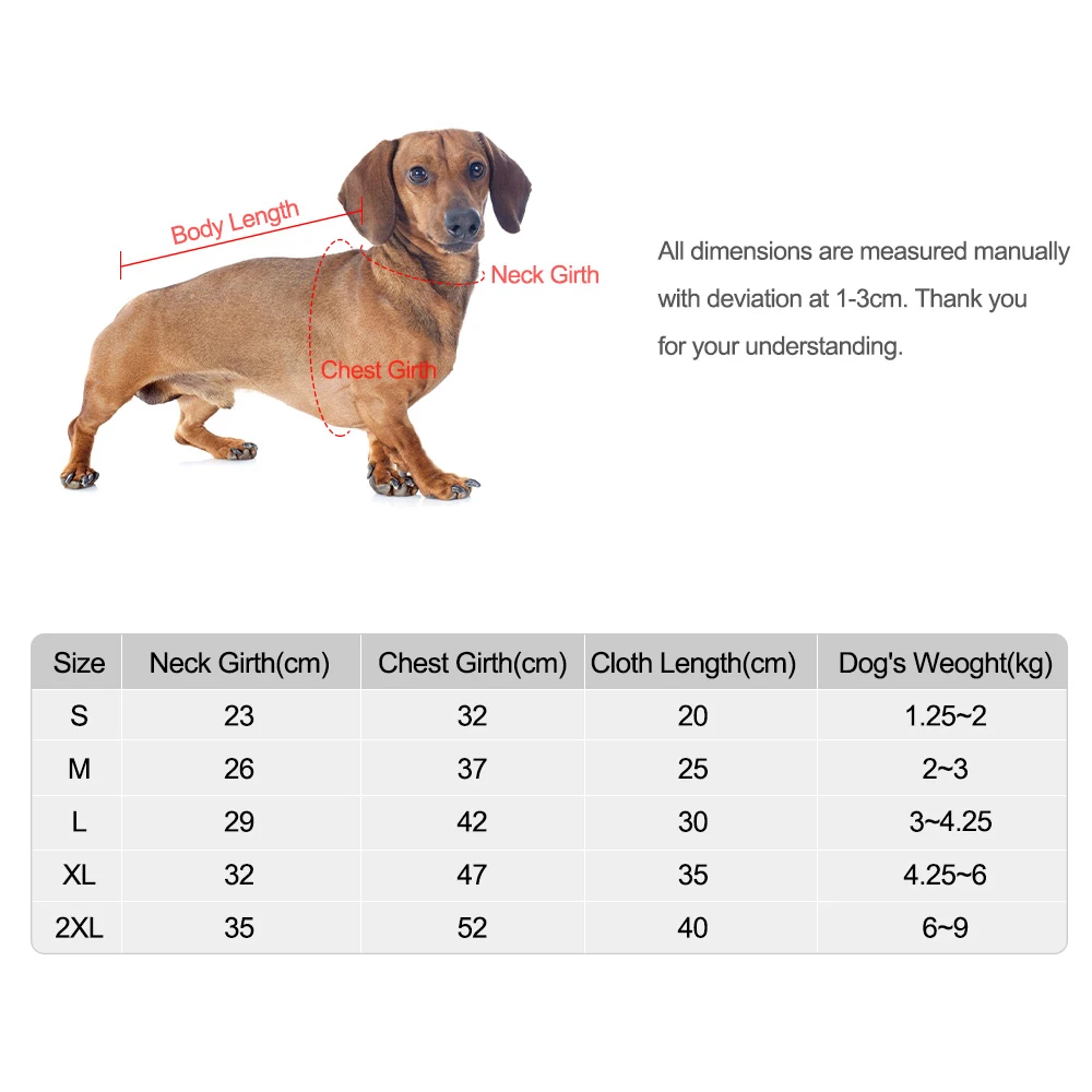 S: обхват груди: 32 см; Обхват шеи: 23 см; длина ткани: 20 см; Вес: 82 г; вес подходящей собаки: 1,25-2 кг;