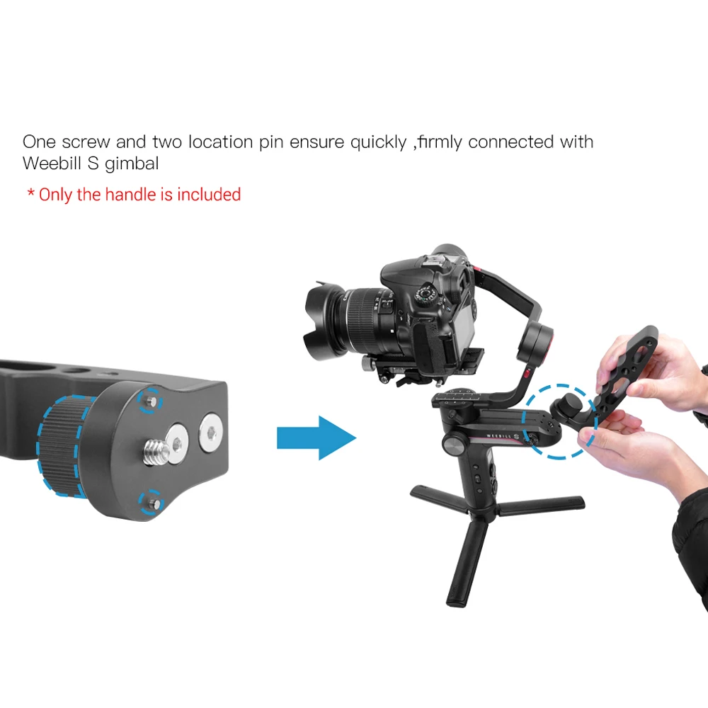Конструкция рукоятки с низким усилием с противоскользящей кривой; Один винт и два штыря обеспечивают быстрое и прочное соединение с Zhiyun weedale S.