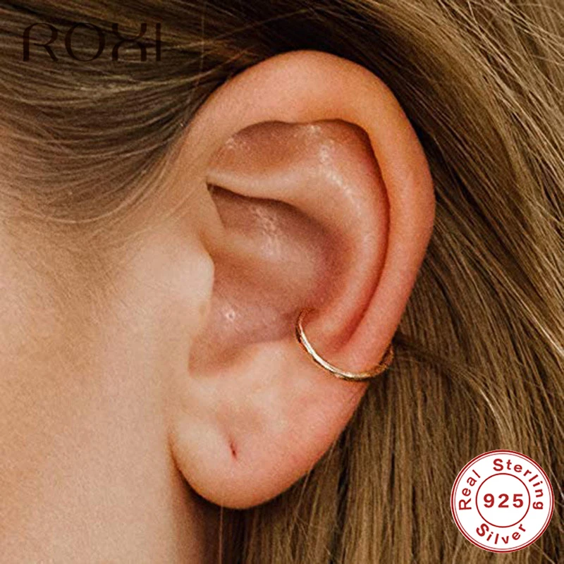 ROXI Минималистичная 925 пробы Серебряная Ушная манжета, не проколотые серьги для женщин, простые ювелирные изделия, корейские серьги, серьги-манжеты