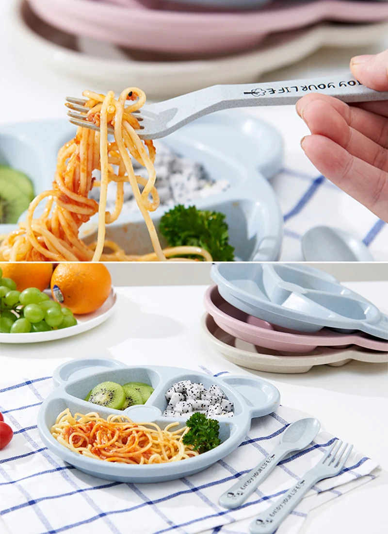 Это комплект детских тарелок с отсеком из пшеничной соломы
