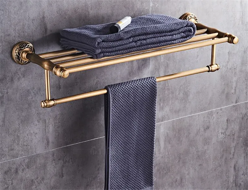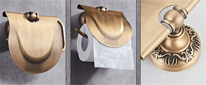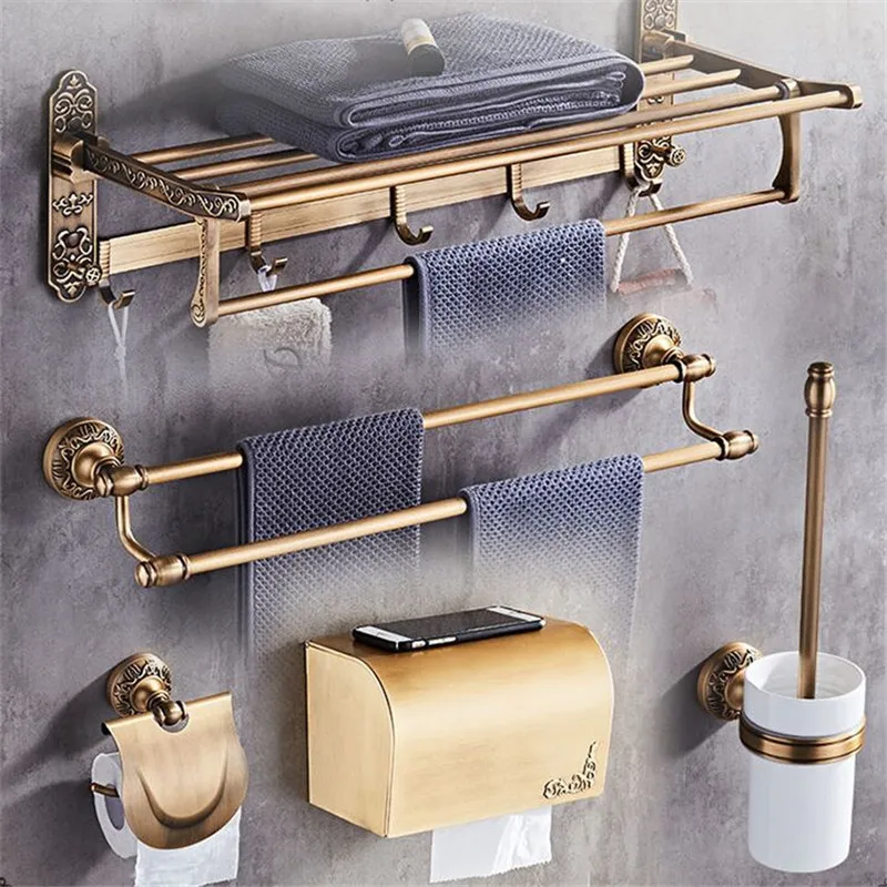 Антикварные Бронзовые Резные аксессуары для ванной комнаты, набор алюминиевых аксессуаров для ванной, складные вешалки для полотенец, угловая полка, держатель для туалетной щетки
