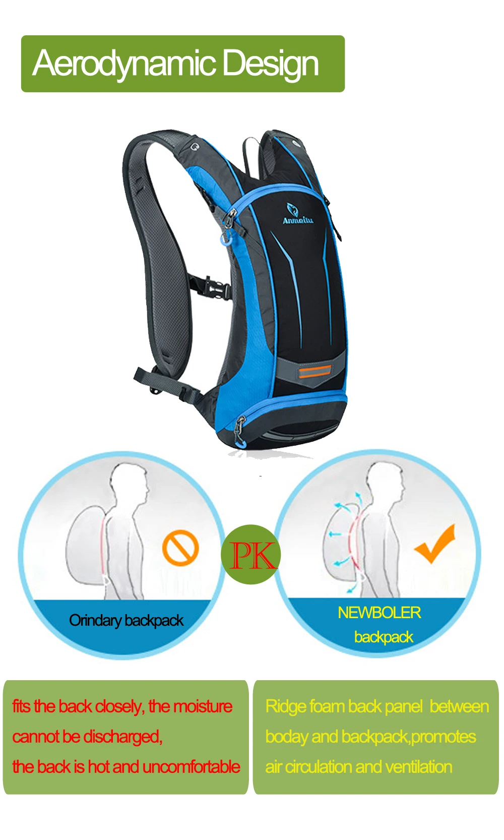 Рюкзак NEWBOLER Hydration изготовлен из высококачественной сетчатой нейлоновой ткани, прочный и легкий. Эргономичный мягкий дизайн поддержки спины обеспечивает вам превосходный опыт, комфорт и воздухопроницаемость.