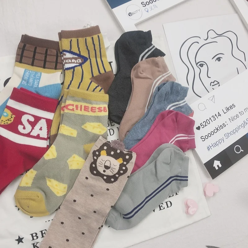Женские повседневные носки в стиле Харадзюку, удобные хлопковые носки в полоску для женщин, оригинальные модные носки в студенческом стиле