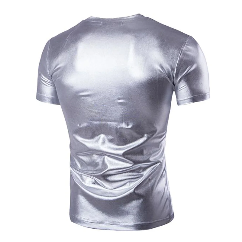 Название: блестящая металлическая футболка с золотым покрытием для мужчин 2021, футболка для ночного клуба, Homme, облегающая футболка с коротким рукавом, мужская повседневная футболка в стиле хип-хоп