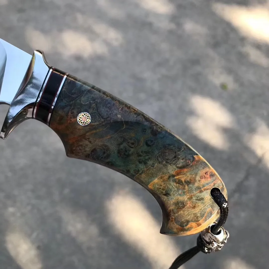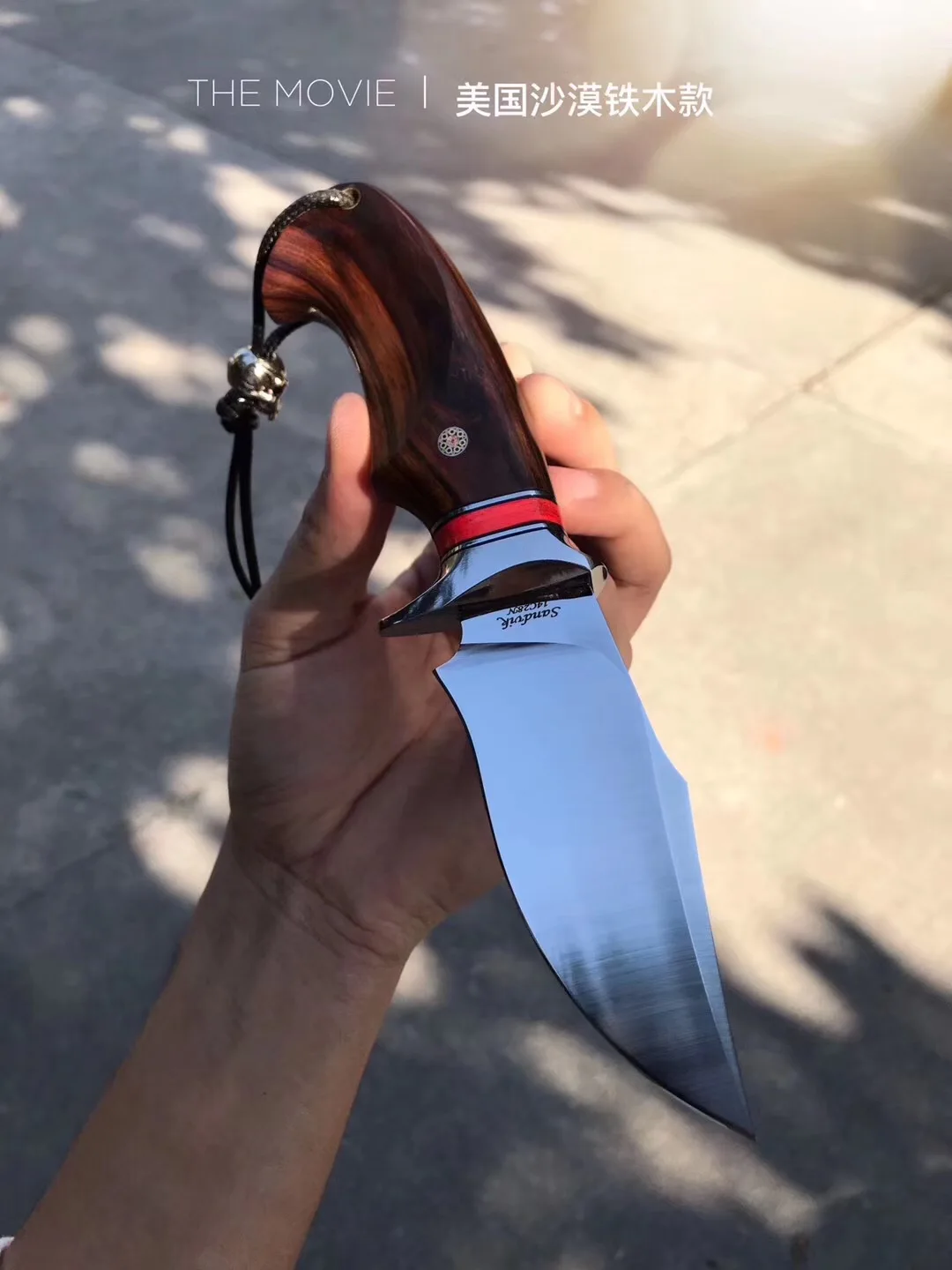 Длина: 21 см Длина лезвия: 9,2 см Толщина лезвия: 3,2 мм Ширина лезвия: 3,6 см Вес: 155 г Твердость: 60-62 HRC Сталь: sandvik 14C28N, порошковая сталь, Швейцария Ручка: Американская пустынная железная древесина с импортным твердым стабильным деревом + верблюжья кость