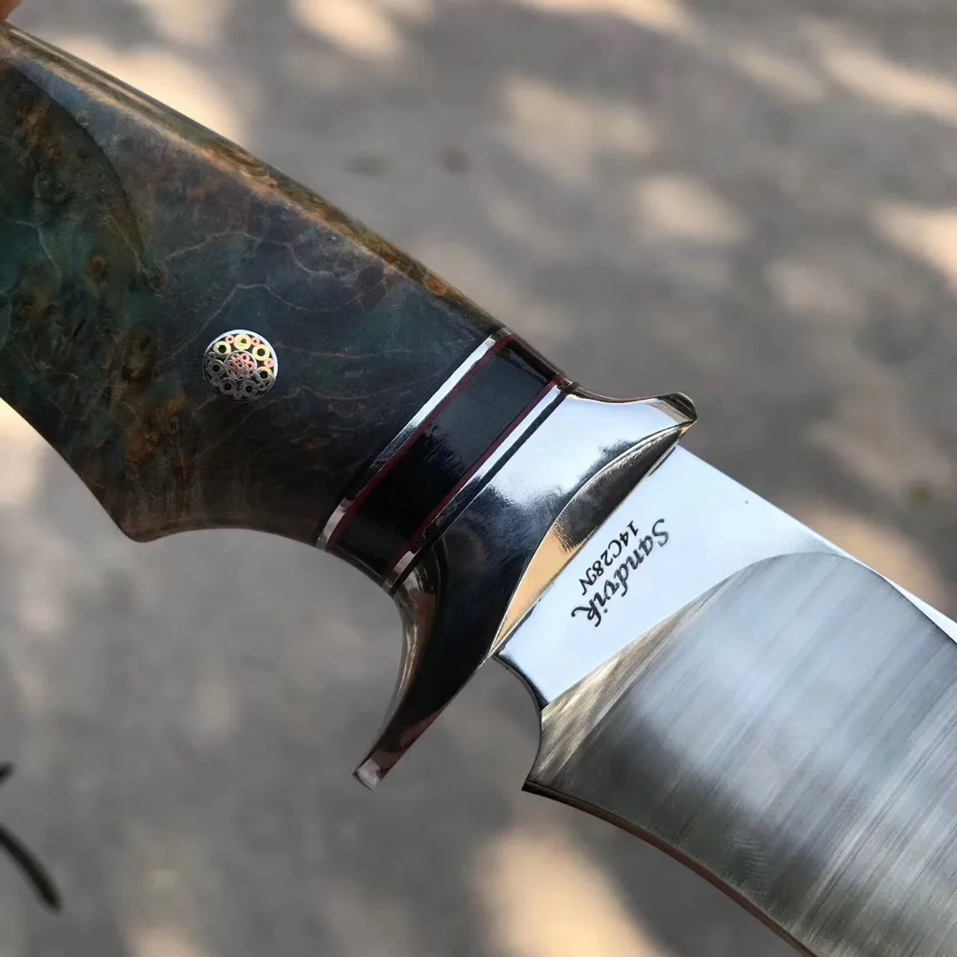 Охотничий нож с фиксированным лезвием, кованый нож ручной работы из порошковой стали 14C28N, нож для кемпинга 61HRC с кожаной ручкой, тактический инструмент для выживания EDC