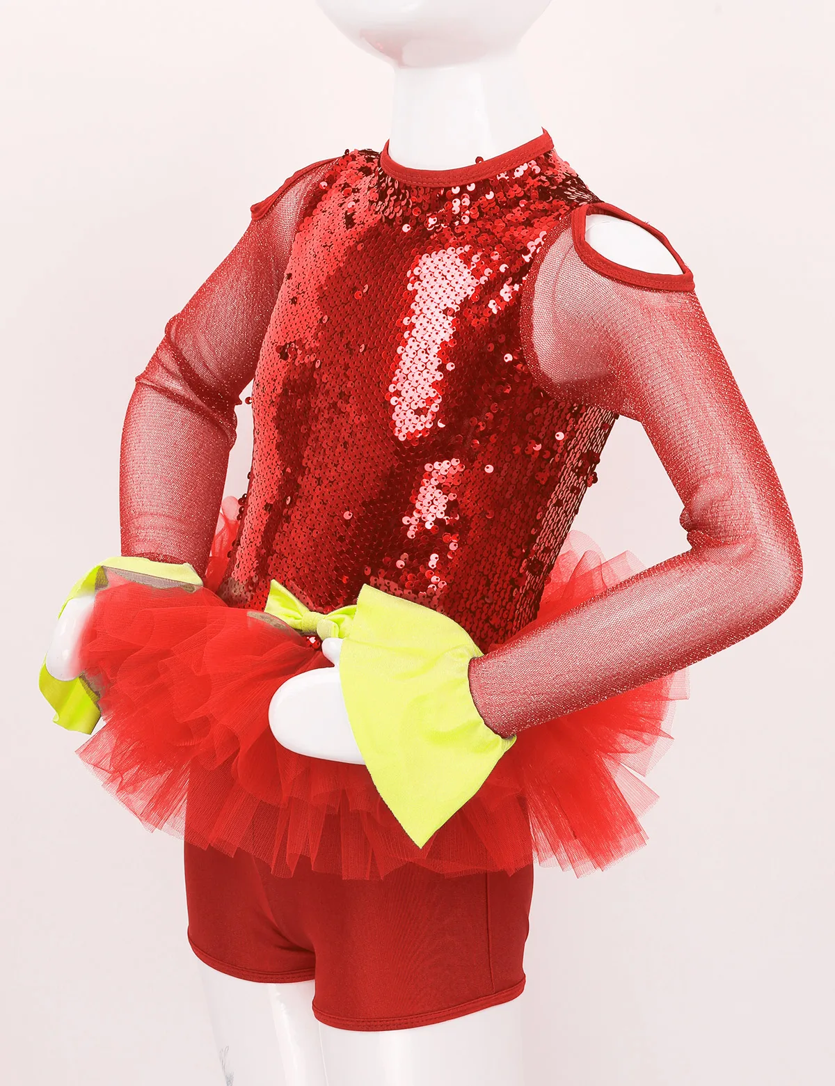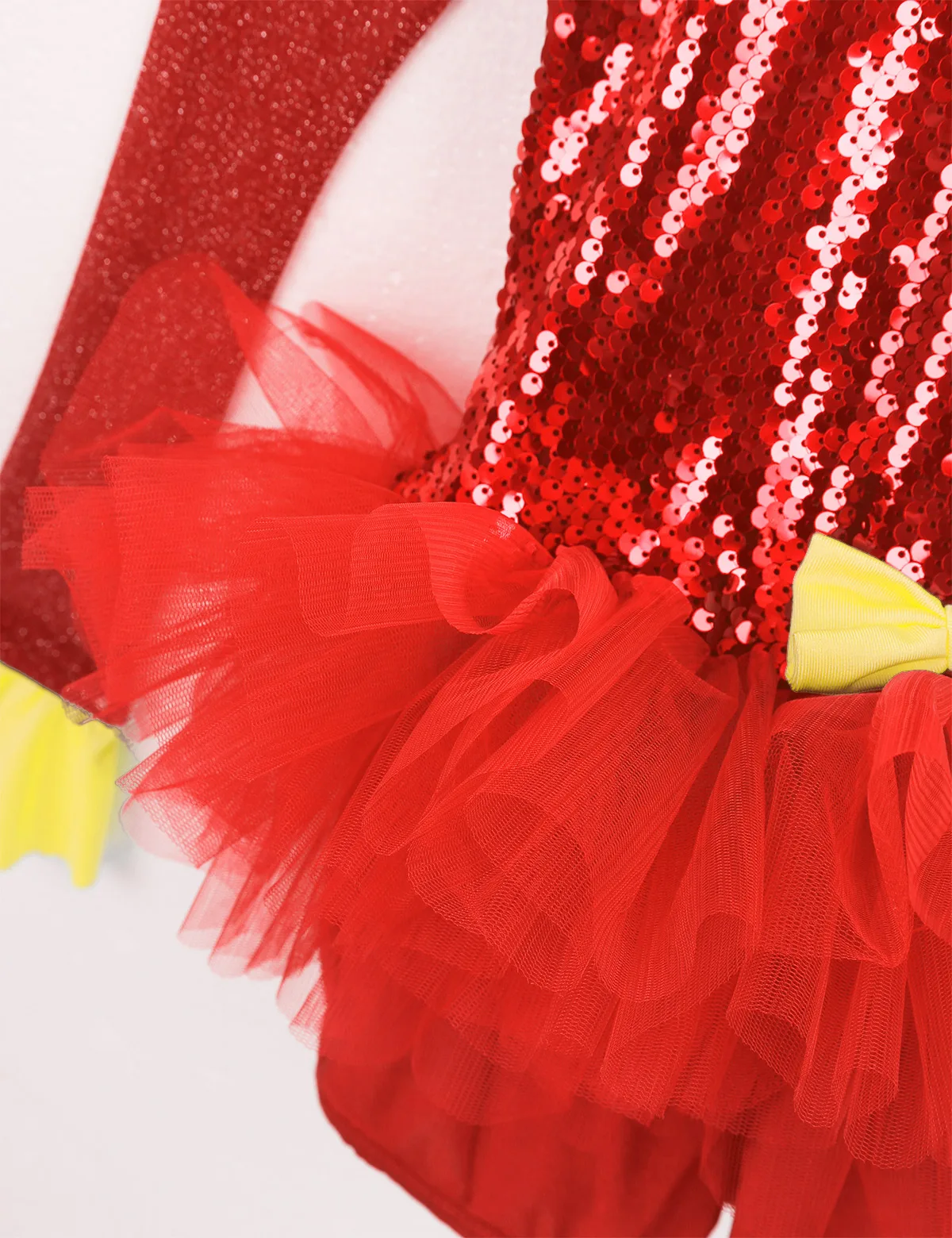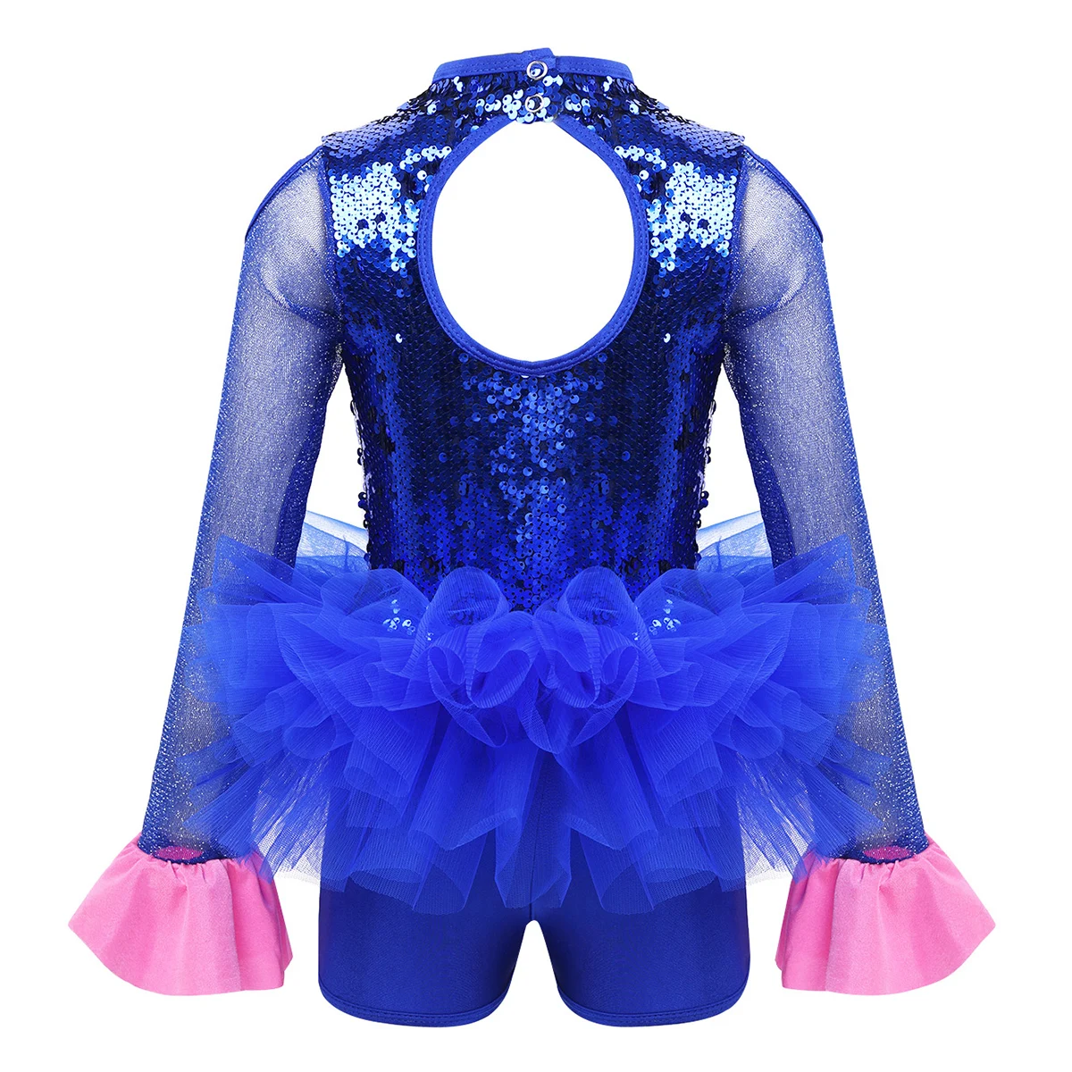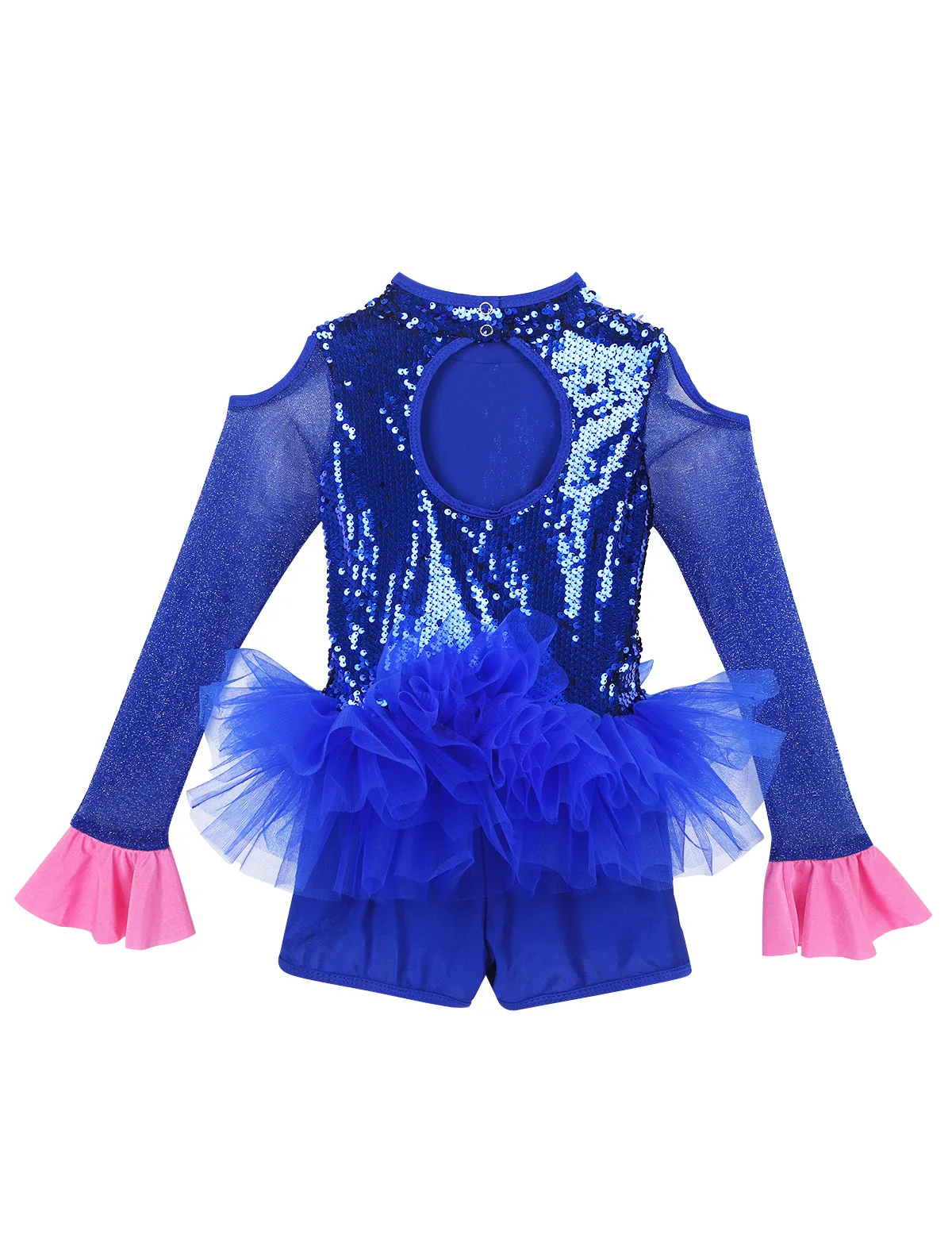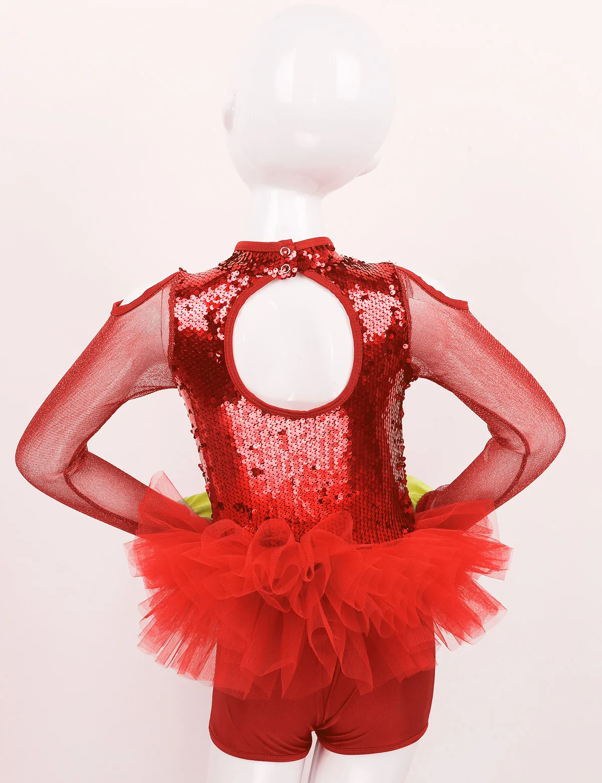 Комбинезон для танцев изготовлен из полиэстера, пайеток и сетчатого материала, ручная стирка. Таблица размеров означает возрастные диапазоны для девочек, но они приведены только для общего ознакомления. Длинные рукава из тюля с расклешенными манжетами, ложная горловина с застежкой на кнопки сзади. Блестящие пайетки на лифе, вырезы на плечах и спине. Талия украшена несъемным бантом спереди. Многослойные пушистые сетчатые оборки на талии. Красивая Одежда для танцев для вашей девочки. Подходит для лирического, современного, современного танца или выступления на сцене и т. Д.