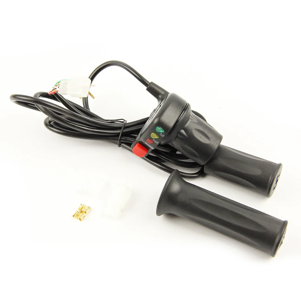 Особенности: 1,24/36/48V электрический велосипед Изменение скорости ручка управления дроссельной заслонки самоблокирующийся. 2,24/36/48V возможно разное напряжение, которые подойдут для большинства электрических транспортных средств. 3. С кнопочным переключателем, может быть подключен в соответствии с различными потребностями. 4. С индикатором заряда батареи, Контролируйте питание автомобиля в любое время. Параметры: Опциональная Операционная Напряжение: 24/36/48V Материал: Пластик Цвет: Черный (как на фотографии) Длина шнура: 1,8 м (прибл.) Размер: подходит для 22,2 мм Цвет линии руля: красный-+ 5 В белый-черный сигнал скорости-зеленый GND-желтый дисплей батареи-линия переключения 1 коричневый-линия переключения 2 посылка Содержание: 1 * поворот дроссельной заслонки