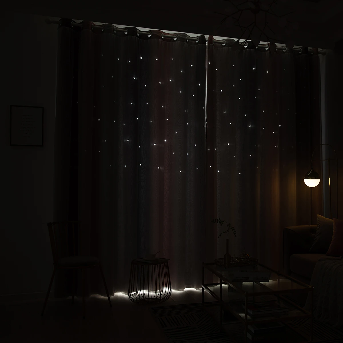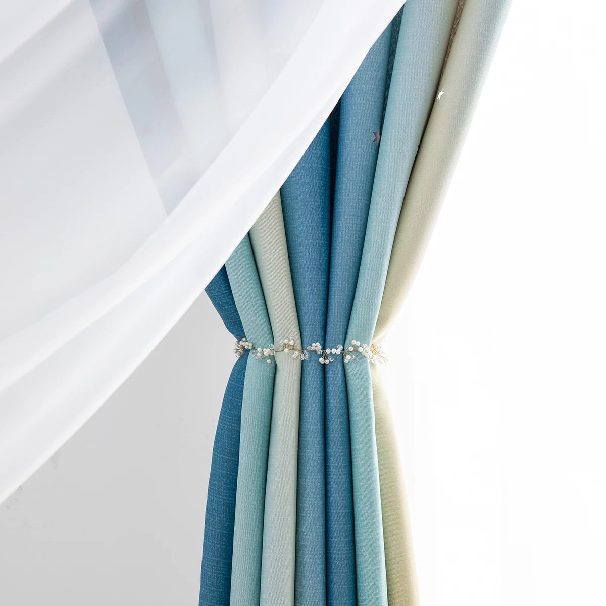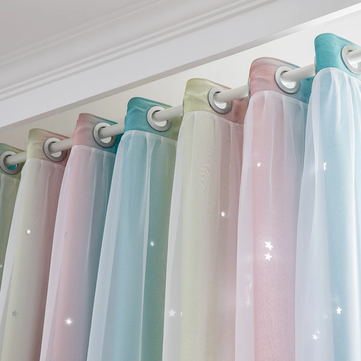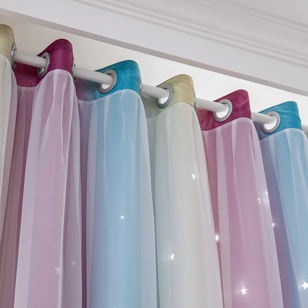 4. Двухслойная пряжа и накладные полые вырезанные звезды Омбре занавес.
