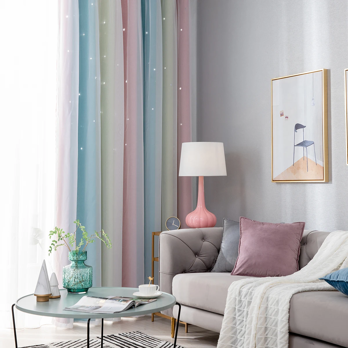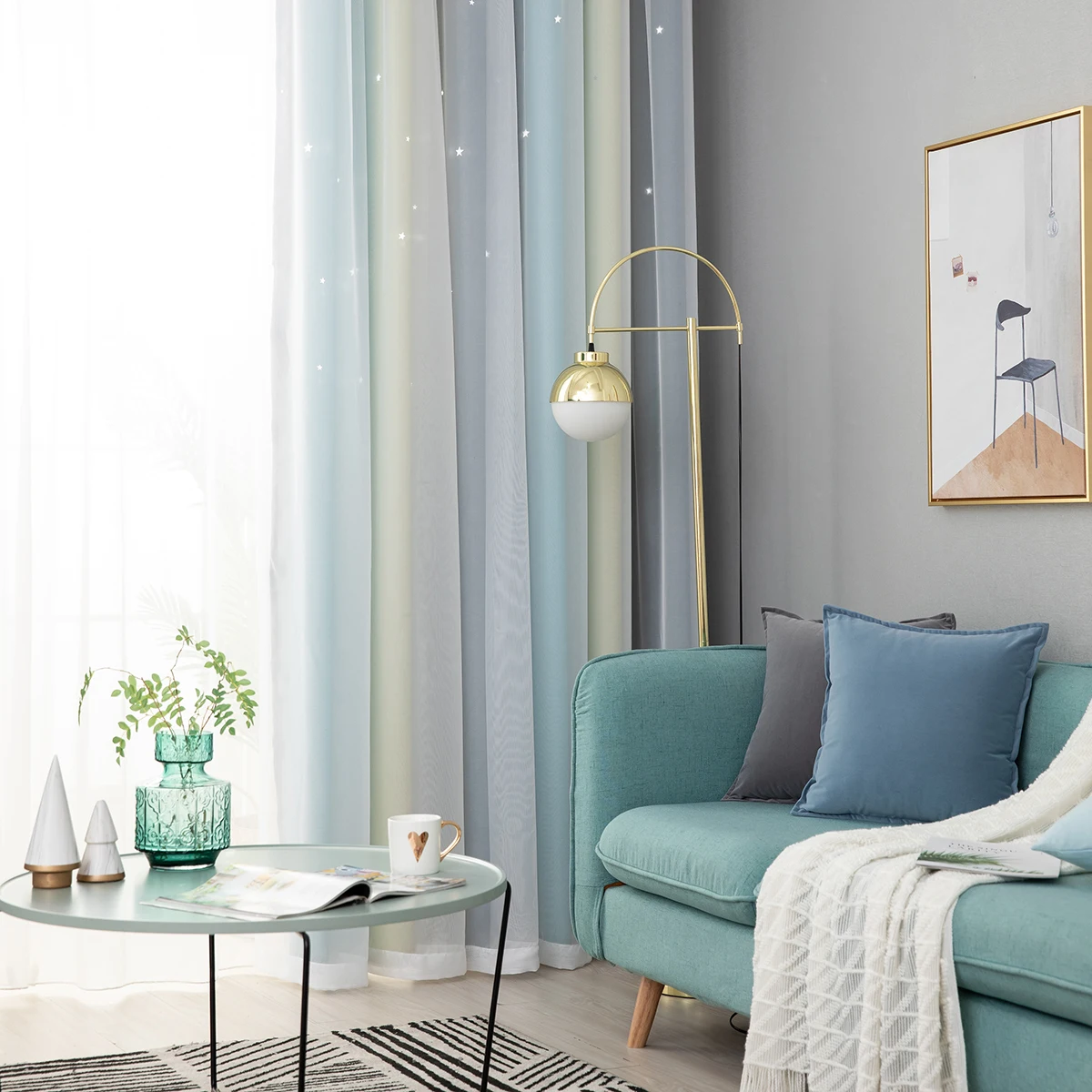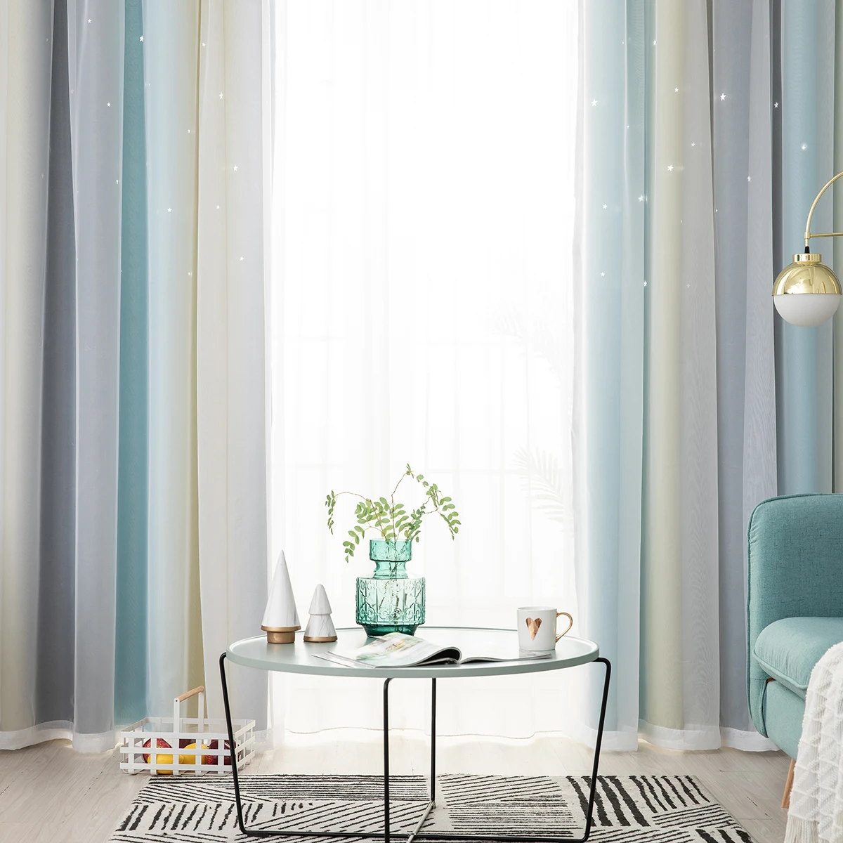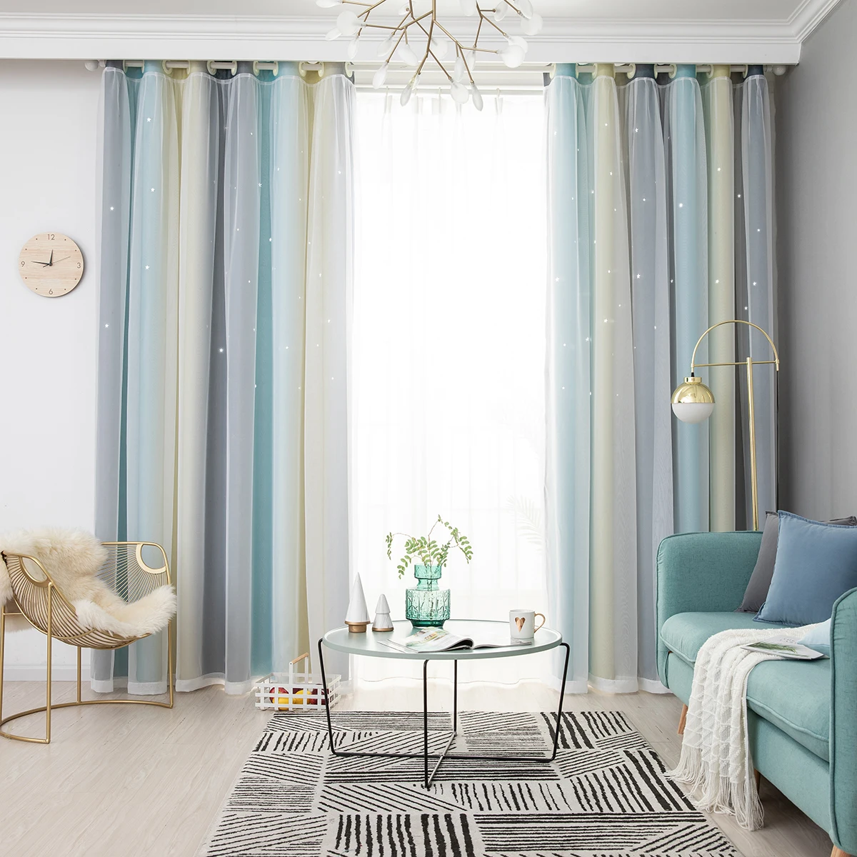 4. Двухслойная пряжа и накладные полые вырезанные звезды Омбре занавес.