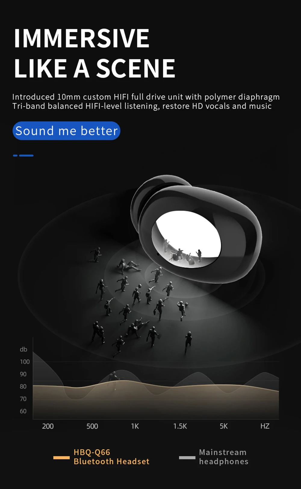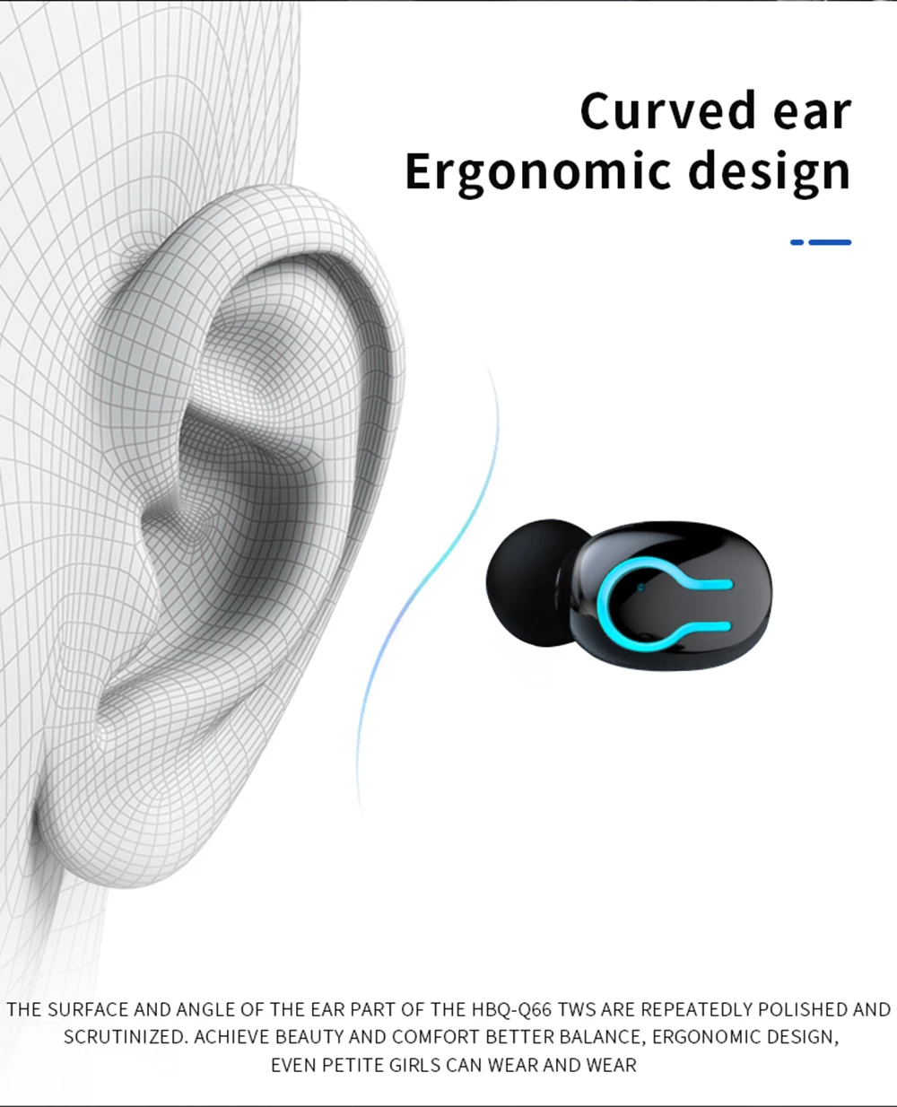 Автоматическое Сопряжение: 1. Выньте левые и правые (LR) наушники из зарядного чехла. Уши автоматически включатся и подключаются (красный и синий свет мигает очень сильно). 2. Откройте поиск по Bluetooth мобильного телефона, нажмите на имя основной пары наушников (HBQ-Q66 tws) для подключения. 3. Они автоматически подключатся к вашему bluetooth-устройству при повторном использовании 4. Эти беспроводные наушники также могут быть одним соединением. ♦Настоящая Беспроводная стерео, разделение левого и правого каналов, звук HIFI. ♦Как левые, так и правые уши имеют функцию Bluetooth гарнитуры, которая может использоваться отдельно или в парах. ♦Двойной режим Bluetooth 5,0, Ультра низкое энергопотребление. ♦Расстояние передачи Bluetooth: 10 метров. ♦Время прослушивания музыки: около 4 часов ♦Емкость аккумулятора (чехол для зарядки): аккумулятор lager емкостью 6000 мА · ч. Может заряжать ваш телефон ♦Время в режиме ожидания: около 300 часов. ♦Протокол поддержки: A2DP1.3/HFP1.6/HSP1.2/AVRCP1.6/DI1.3. ♦Технология шумоподавления: CVC6.0.