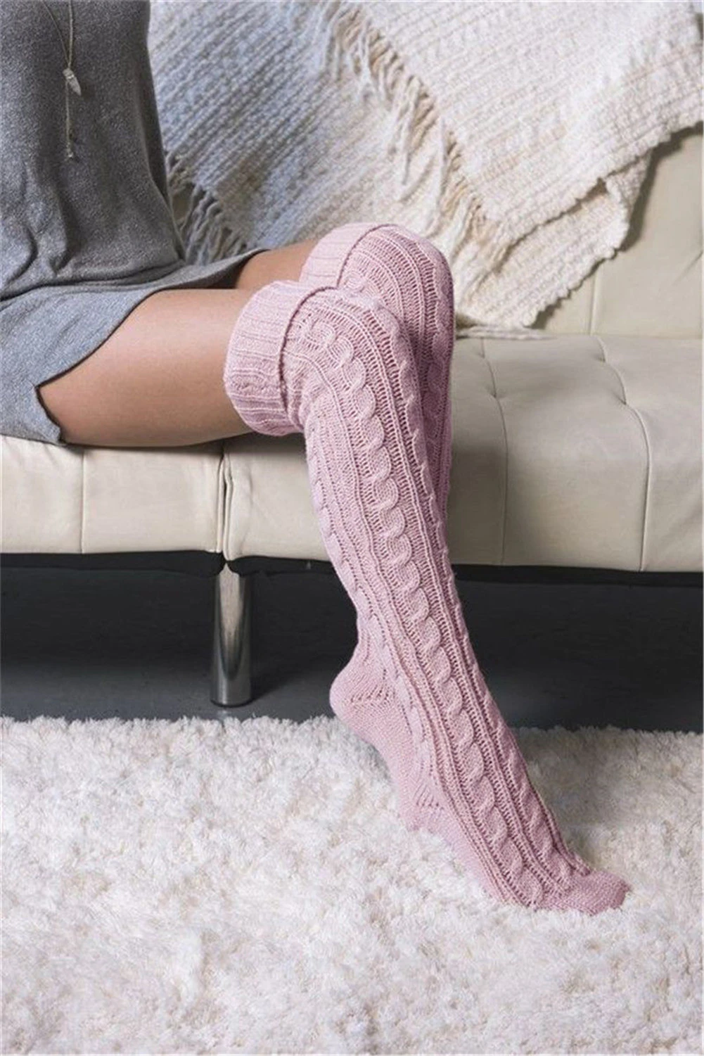 Item: Womens Cable Knit Long Boot Socks Over Knee Thigh High Warmer Stocking