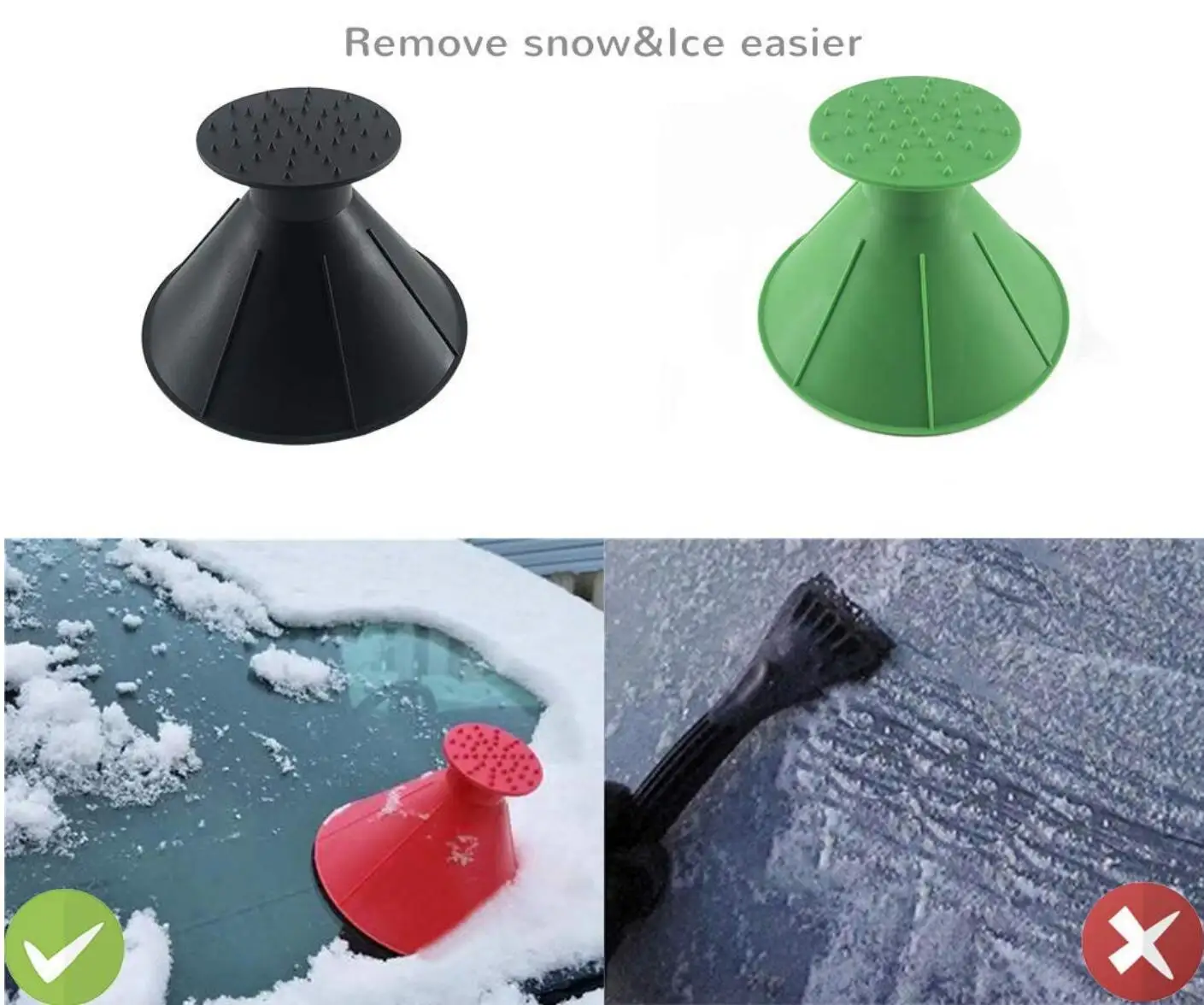 Одна сторона конусного ледяного скребка является дополнительной, чтобы покрыть больше площади для соскабливания и удаления снега с вашего автомобиля, в то время как другая Сторона Конуса должна быть ледоколом.