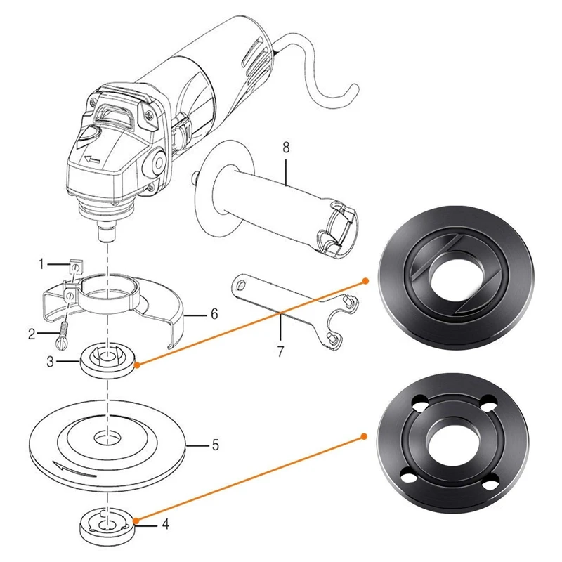 Угловая шлифовальная гайка с фланцем (Внутренняя и наружная), гаечный ключ
