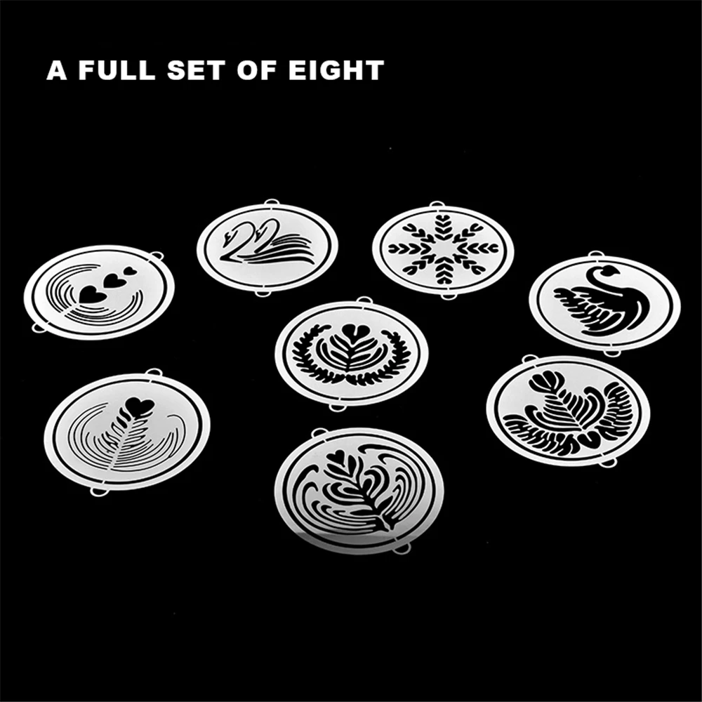 Размеры: 8,7 см подходит для чашки диаметром в пределах 10 см. Сделать его легким с причудливыми тянет-чашку шикарного кофе по-своему Многие друзья, которые пьют кофе, чувствуют, что вытягивание цветов-это головная боль Я также хочу добавить некоторые узоры в эту чашку капучино в моей руке Эта Пылезащитная форма очень подходит для вас, печатная форма сейчас очень популярна ~ Эта форма может использоваться повторно, пищевая нержавеющая сталь Пожалуйста, выберите кофейную чашку с диаметром рта около 7-8 см Может быть полностью покрытые на устье чашки (уменьшенного использования пластин диаметр 8,7 см) Полный набор из 8 моделей