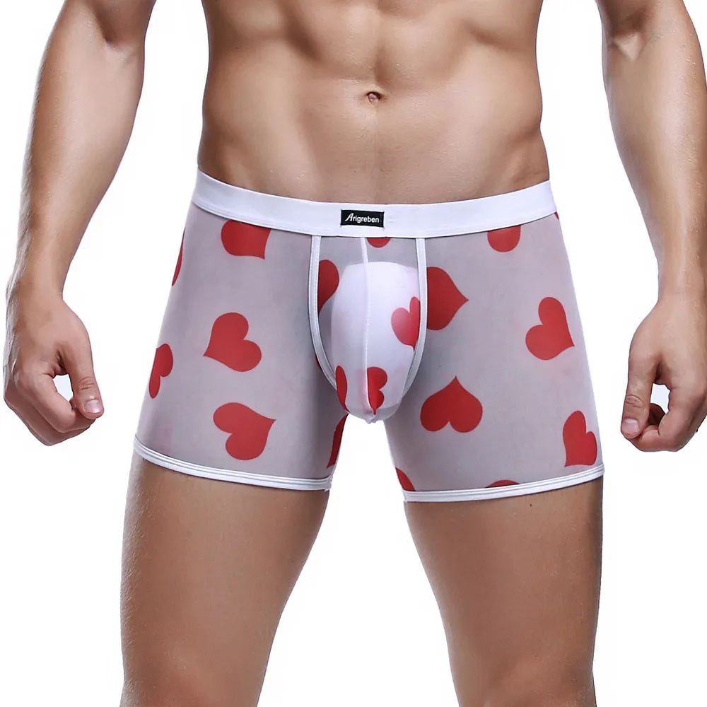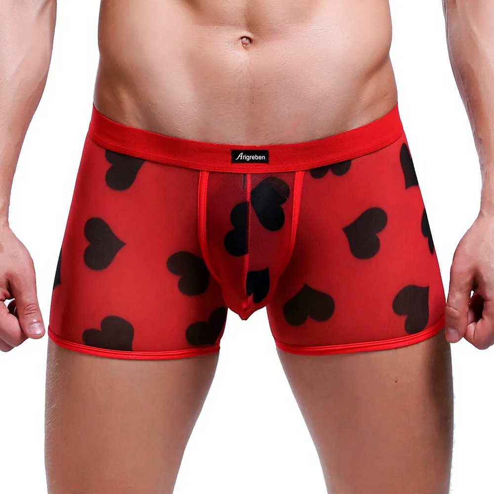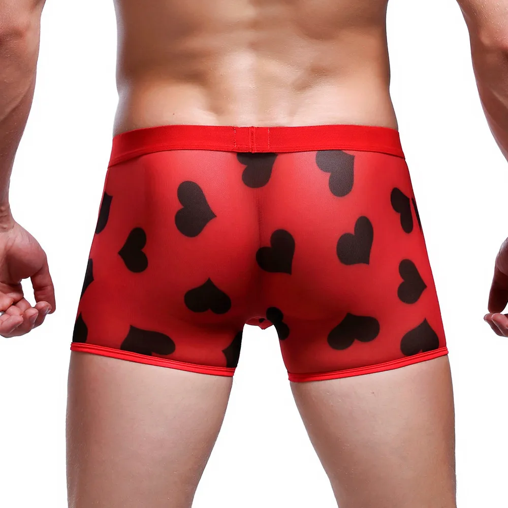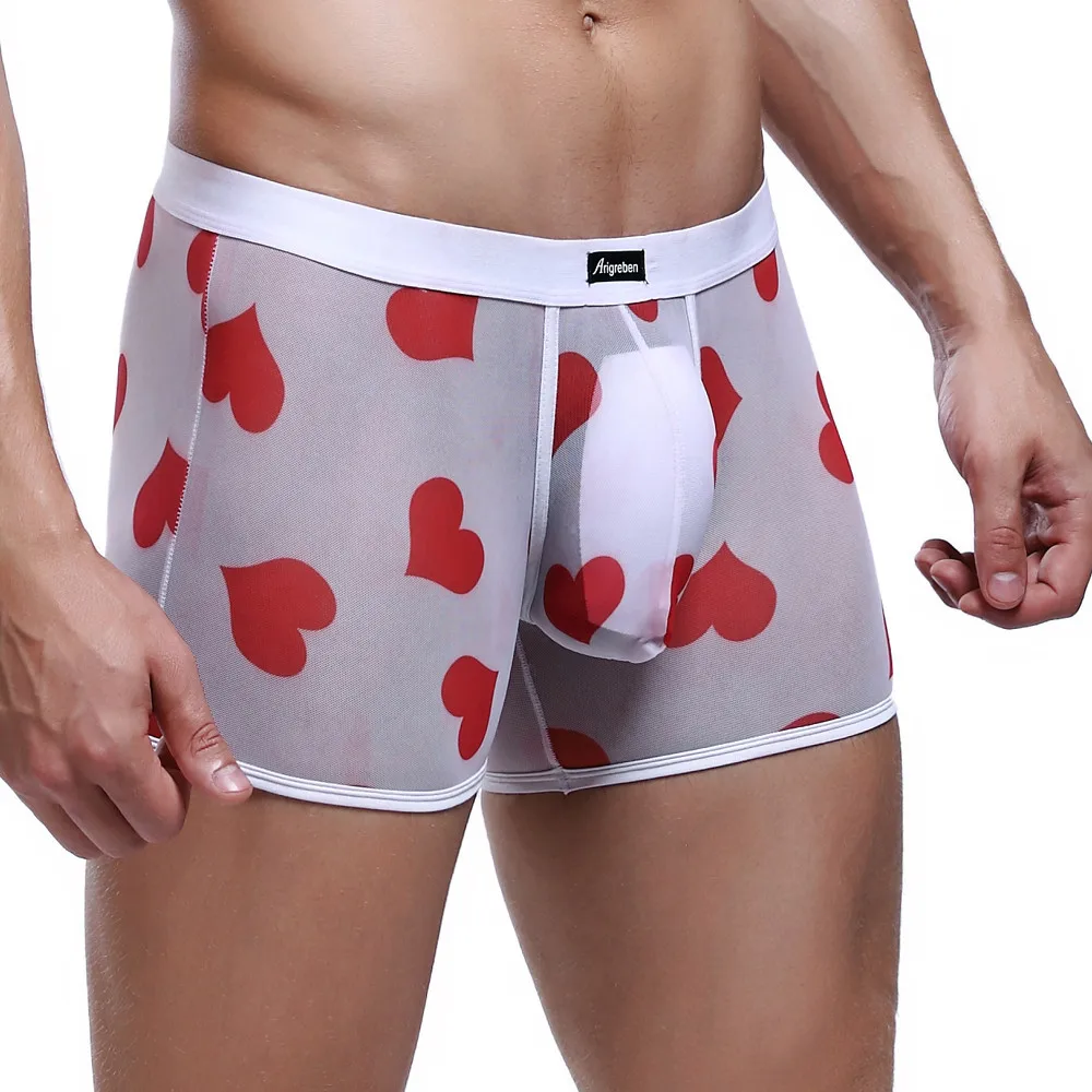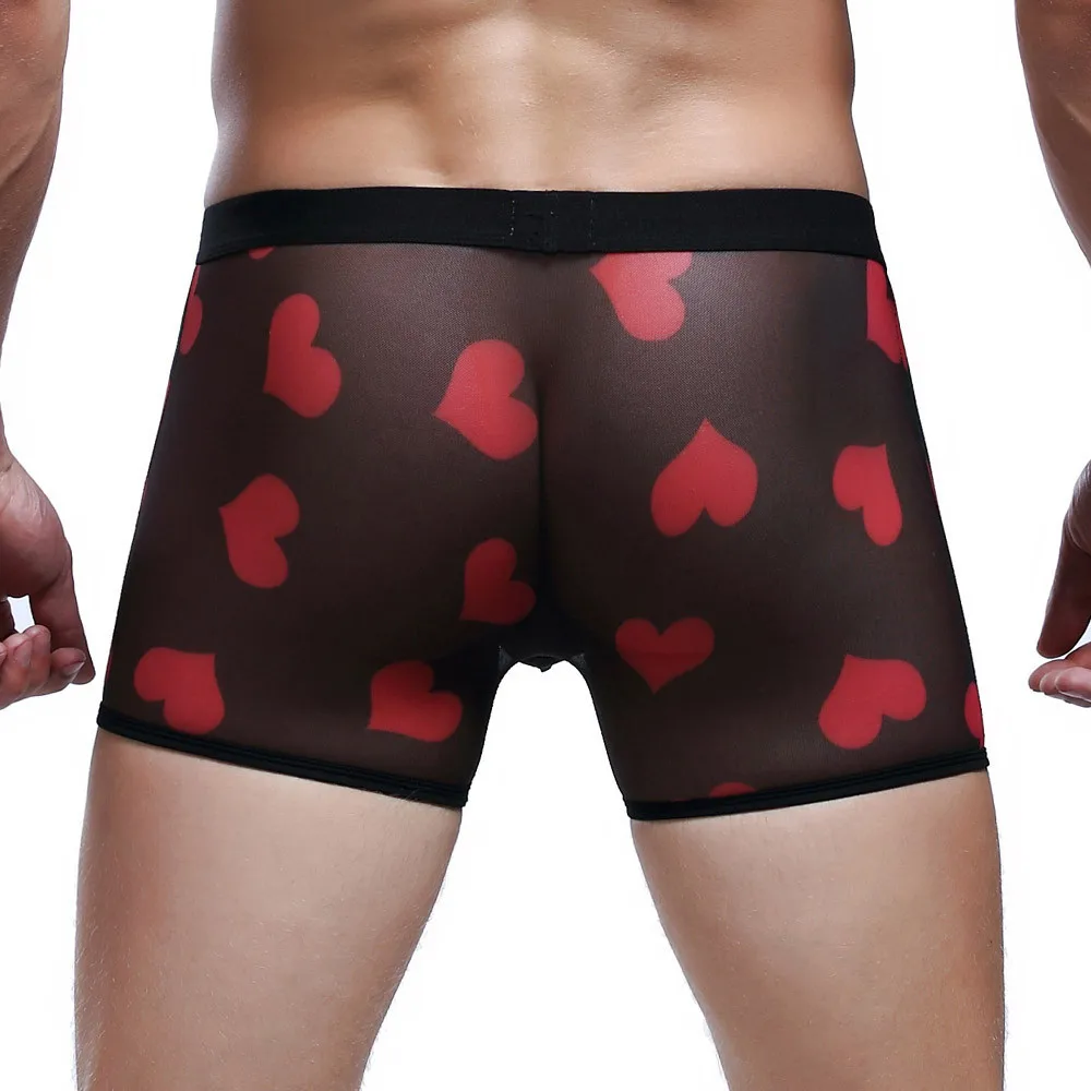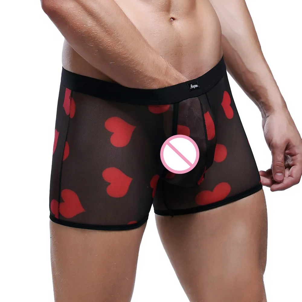 Сексуальное нижнее белье для мужчин, боксерские шорты, сексуальное нижнее белье с сердцем, дышащее Спортивное Сетчатое прозрачное гей нижнее белье, Cueca Masculina