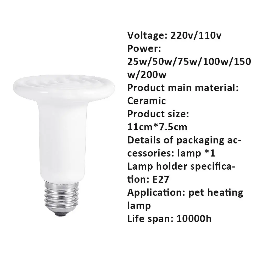 Мощность: 25 Вт/50 Вт/75 Вт/100 Вт/150 Вт/200 ВтОбратите внимание! Температура нагрева только для справки. В зависимости от фактической ситуации, чем больше мощность, тем выше температура нагрева.
