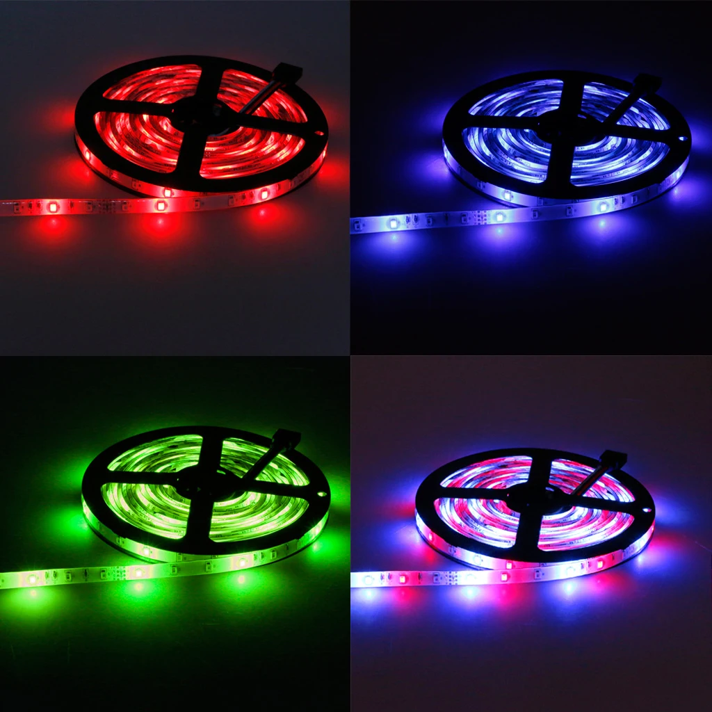 Тип светодиодный: 3528 RGB светодиодный Степень защиты: водонепроницаемый Длина: 5 м Тип светодиодный: SMD 3528 Количество СВЕТОДИОДНЫЙ: 300 светодиодный s /5 м, 60 Светодиодный s /m Светодиодный светильник цвет: RGB (белый светильник не входит в комплект) Количество: 5 м/рулон Длительный срок службы 50 000 часов Тип источника питания: 12 В 2 А (24 Вт) Вход источника питания: 100-240 В переменного тока 50/60 Гц Разъем питания: ЕС Задняя часть с самоклеющейся поверхностью Гибкая лента может быть обернута или согнута Ультра-яркий, но работает при низкой температуре Характеристики контроллера RGB: Тип: 44-клавишный ИК-пульт дистанционного управления Режим подключения: общий анод (+) Рабочая температура: от-20 °C до + 60 °C Размер блока управления: 50 мм (Д) x35 мм (Ш) x19 (В) мм Размер пульта дистанционного управления: 125 мм (Д) x 55 мм (Ш) x 7 мм (В) Аккумулятор пульта дистанционного управления: 1 батарея CR2032 (входит в комплект) Количество: 1 комплект