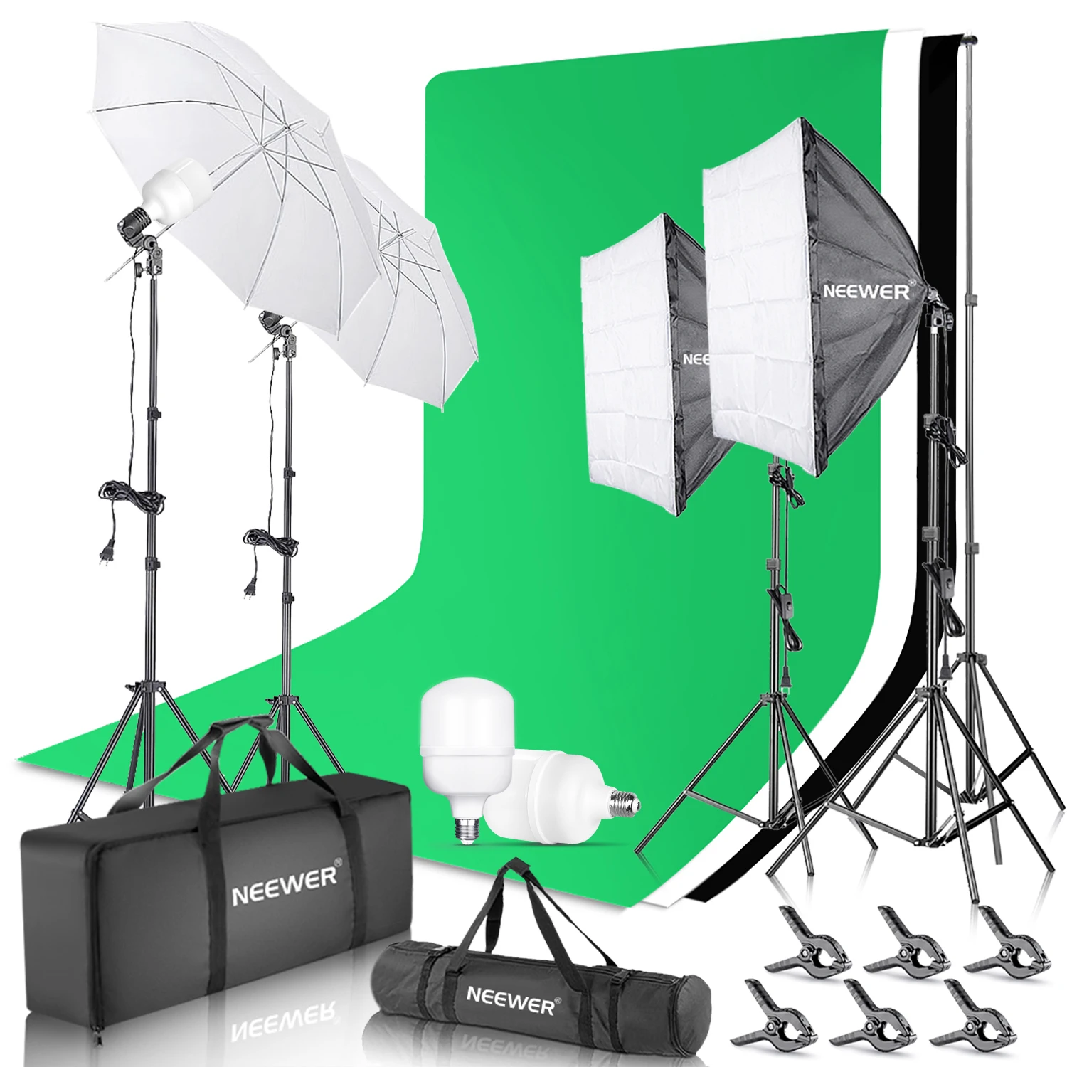 Neewer 8.5x10ft стойку задника Поддержка комплект с 6x9ft фон, 900W 5500K с выдвижной ручкой, размером 24 дюйма, сумка светодиодный софтбокс и зонты комплект непрерывного освещения для фотостудии продукта портретной фотографии видеосъемки