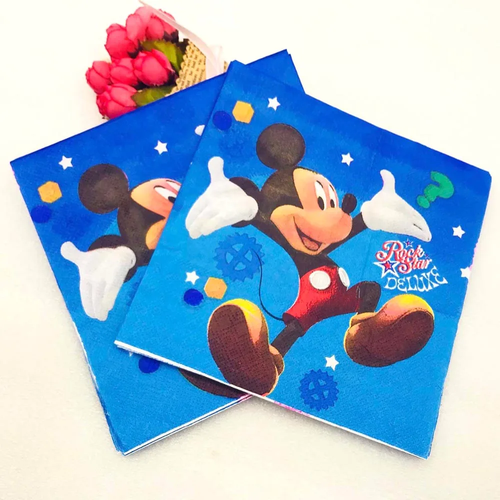 Вечерние принадлежности для Микки Мауса, украшения, скатерть, чашка, тарелка, соломенная салфетка, Подарочная сумка, свечи, конфета попкорн, коробка для детей на день рождения