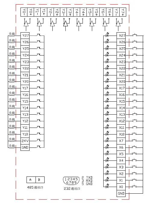 Adaptive baud rate232скорость загрузки порта программирования Чрезвычайно быстрая.,485 порт связи поддерживает загрузку программ, связь с сенсорным экраном, инструкции rs2, MODBUSAgreement!
