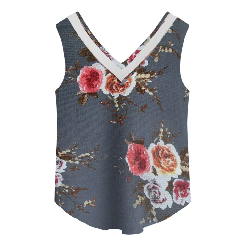 Женская Цветочная повседневная майка без рукавов Блуза Топ на бретельках