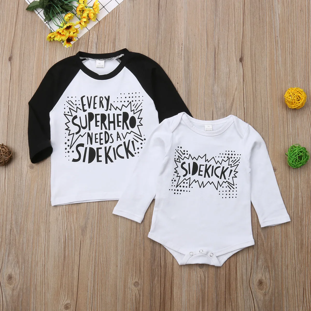 Комбинезон для маленьких мальчиков с принтом «Маленький Брат»; Футболка для больших мальчиков; Топы; Футболка; Одинаковая одежда