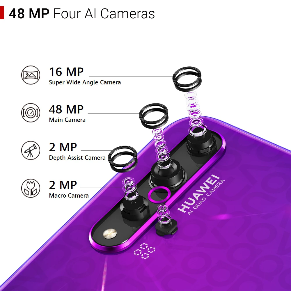 Цвет Midsummer PurpleBlackCrush синий Дисплей Размер: 6,26 дюймов * Экран измеряется по диагонали как полный прямоугольник без учета закругленных углов. Цвет: 16,7 миллионов цветов Цветовая гамма: Насыщенность цвета (NTSC): 96% (типичное значение) Тип: ЖК-дисплей Разрешение: FHD + 2340x1080 * Разрешение, измеренное как стандартный прямоугольник, с закругленными углами на дисплее dewdrop, Эффективные пиксели немного меньше. Процессор ЦП: Восьмиядерный HUAWEI Kirin 980 2 x Cortex-A76 на 2,6 ГГц + 2 x Cortex-A76 на 1,92 ГГц + 4 x Cortex-A55 1,8 ГГц Графический процессор: Mali-G76 720 МГц НПУ: Двойной NPUs (Neural-network Processing Unit) Операционная система EMUI 9,1 (на базе Android 9) Память Yale-L21: 8 Гб RAM + 128 ГБ ROM * Из-за ограничений мощности обработки процессора, памяти, используемой операционной системой и предварительно установленными приложениями, фактическое пространство, доступное для пользователей, может быть меньше заявленной емкости памяти. Фактическое пространство памяти может меняться из-за обновления приложений, операций пользователя и других связанных с ними факторов. Камера Задняя камера: 48 МП (диафрагма f/1,8 AF) + 16 м (диафрагма f/2,2 FF) + 2 м (диафрагма f/2,4 FF) + 2 м (диафрагма f/2,4 FF), поддерживает автофокус (фазовый фокус, контрастный фокус). Фронтальная камера: Диафрагма 32 МП, f/2,0, поддерживает фиксированное фокусное расстояние. * Фото пикселей могут отличаться в зависимости от режима съемки. Аккумулятор 3750 мАч (типичное значение) 3650 мАч (минимальное значение) * Эта емкость является номинальной емкостью аккумулятора. Фактическая емкость батареи для каждого отдельного телефона может быть немного выше или ниже номинальной емкости аккумулятора. Зарядка Зарядное устройство Inbox поддерживает 5V / 4.5A или 5V / 2A Поддерживается (супер Зарядка 5 В/4,5a, Совместимость с 9 В/2 а) Около 1,5 часов * Лабораторные данные генерируются путем зарядки телефона с помощью стандартного зарядного устройства с выключенным экраном. Фактическое время зарядки может отличаться в зависимости от использования. Сеть Yale-L21 GMS:B2/B3/B5/B8 WCDMA:B1/B2/B4/B5/B6/B8/B19 FDD-LTE:B1/B2/B3/B4/B5/B7/B8/B18/B19/B20/B26/B28 * Функции, доступные в живой сети, зависят от сети перевозчика. Подключение WLAN: 2,4G: 802.11b/g/n 5G: 802.11a/n/ac (wave2) Bluetooth: Поддержка аудио BT 5,0, BLE, SBC, AAC, LDAC и HWA. USB: Type-C, USB 2,0 Стандартный разъем для гарнитуры Стандарт TIA (LRGM) Примечание: адаптер для наушников Type-C-3,5 мм Расположение Поддержка GPS (L1 + L5 dual-band) /GPS / Glonass / BeiDou / Galileo (E1 + E5a dual-band) / QZSS (L1 + L5 dual-band) NFC Режим чтения карт/режим точка-точка/режим моделирования карты (оплата с помощью sim-карты * или HCE) поддерживается. * Sim-карта, используемая для оплаты sim-карты, может быть вставлена только в слот для карты SIM1. Датчики Окружающего светильник Сенсор Гироскоп Компас Датчик приближения Датчик Гравитации Датчик Холла Датчик отпечатков пальцев Аудио Mp3, mp4, 3gp, ogg, amr, aac, flac, wav, midi Видео 3gp, mp4 В коробке 1) трубка x 1 2) Встроенный аккумулятор x 1 3) зарядное устройство x 1 4) кабель типа C x 1 5) защитный чехол из ТПУ x 1 * 6) руководство по быстрому запуску x 1 7) Инструмент для извлечения x 1 8) Гарантийный талон x 1 * 9) адаптер для наушников Type-C-3,5 мм x 1 * Зависит от рынка * Свяжитесь с отделом продаж для получения более подробного списка.
