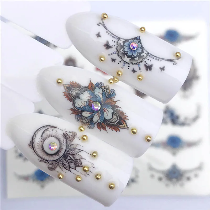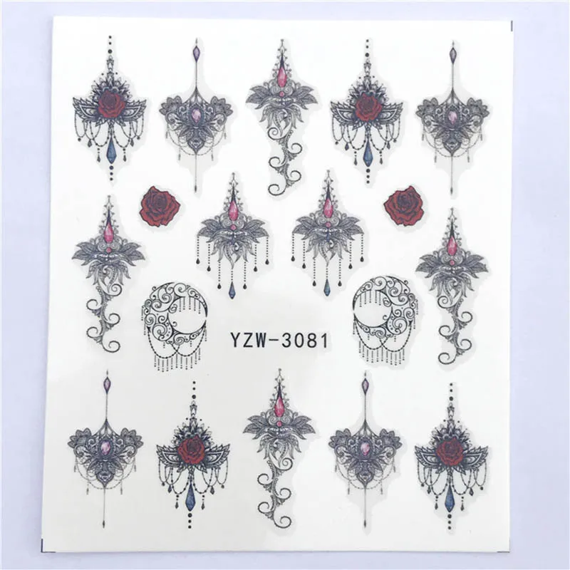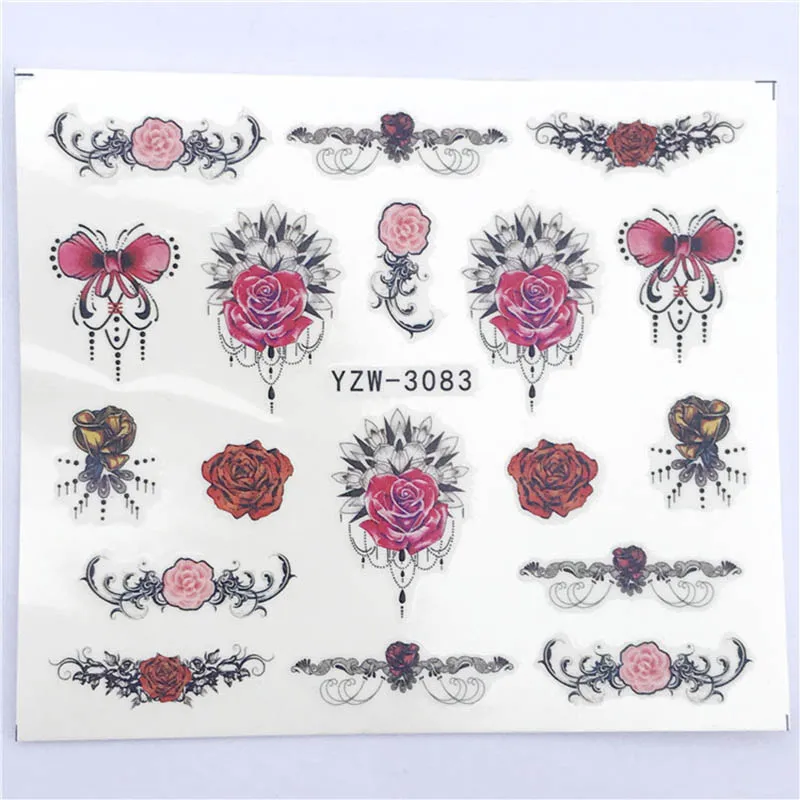 Стикер для дизайна ногтей, красивый цветок, роза, ожерелье, фламинго, iamge, печать, 3D Маникюр, украшение, Переводные переводные наклейки для ногтей, FW003